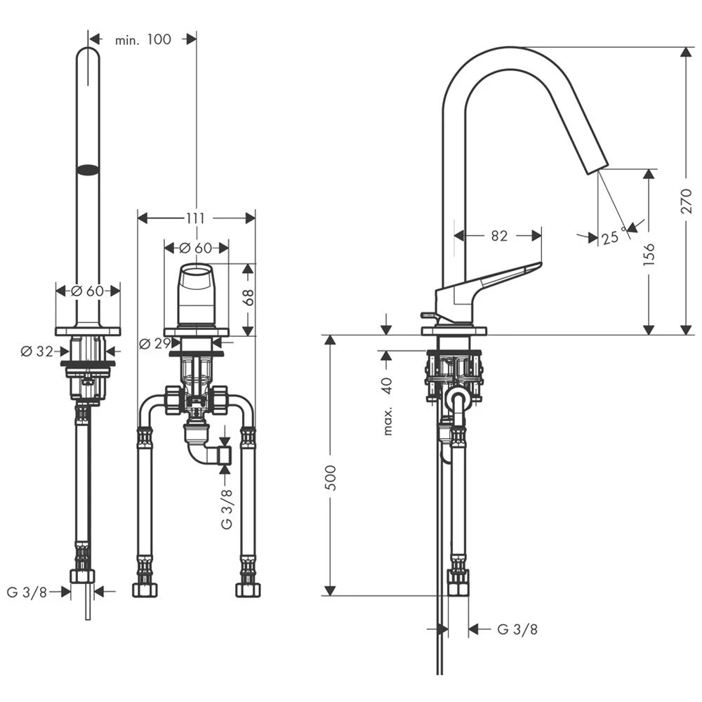 Eigenschaften: Keramikmischsystem für Durchlauferhitzer geeignet Zugstangen Ablaufgarnitur 1 1/4″ Temperaturbegrenzung individuell einstellbar mit Anschlussschläuchen zur freien Positionierung von Auslauf und Griff Höhe: 27 cm