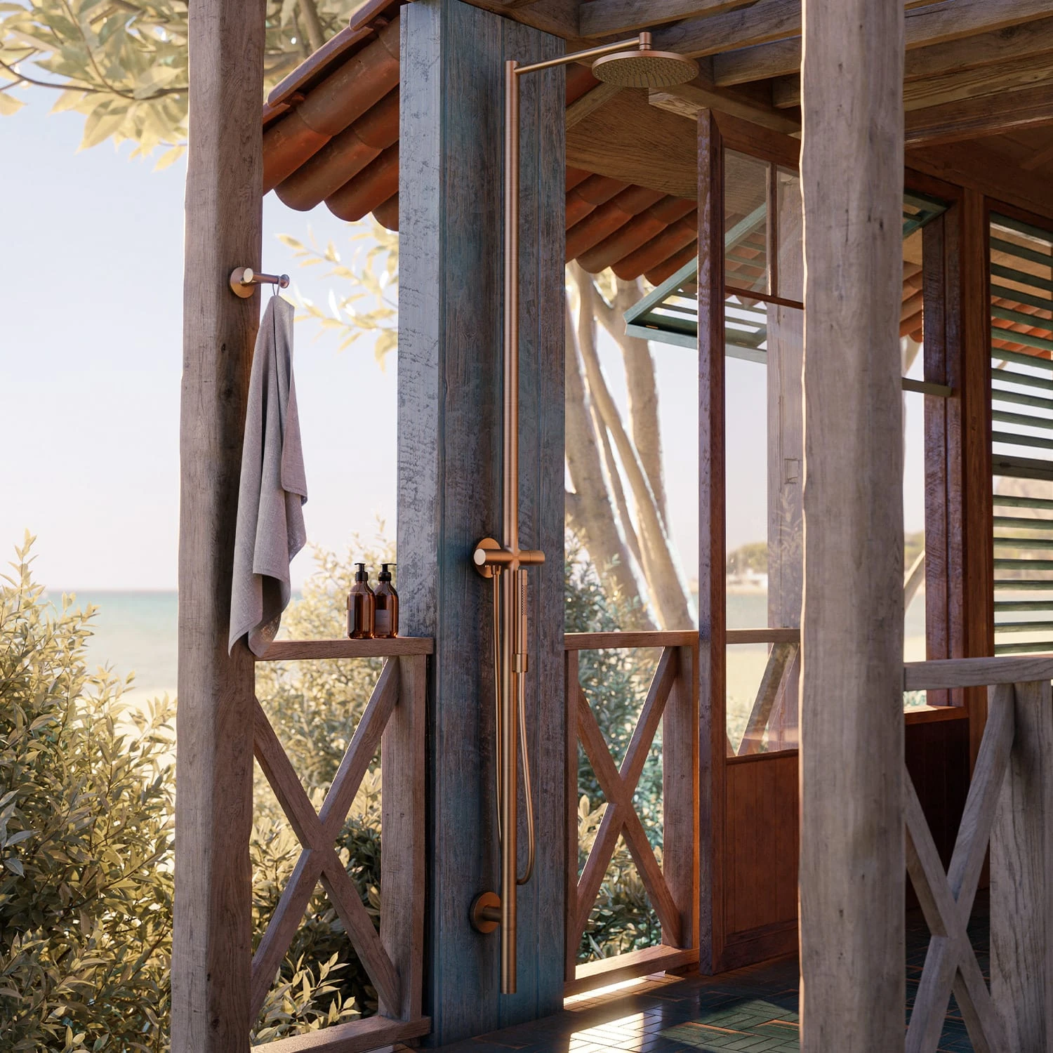 bestehend aus: Duschsäule Kopfbrause Stabhandbrause Brausemischer Brauseschlauch Eigenschaften: Brausekopfgröße: 24 cm Kopfbrause 240 1jet Strahlart Kopfbrause: PowderRain maximale Durchflussmenge bei 3 bar: 13,2 l/min maximale Durchflussmenge bei 1 bar: 7,5 l/min Strahlart Handbrause: Rain, MonoRain Durchfluss für Handbrause bei 3 bar: 13,2 l/min Mindestfließdruck: 1 bar min. Betriebsdruck: 1 bar max. Betriebsdruck: 10 bar Verbraucheransteuerung durch Drehen Keramikmischsystem für Durchlauferhitzer geeignet Montage: Wandmontage Anschlussgröße: DN15 Anschlussart: G ½ Aufputzmontage Rückflussverhinderer 2 Verbraucher einfache Entleerfunktion durch Entfernen der Rückschlagventile Anwendungsbereich: Outdoor bei Überwinterung/Frostgefahr: Das Produkt muss komplett demontiert, entleert und trocken eingelagert werden. Alle Komponenten dürfen kein Wasser mehr enthalten. der Wasseranschluss des Produktes muss zugänglich sein