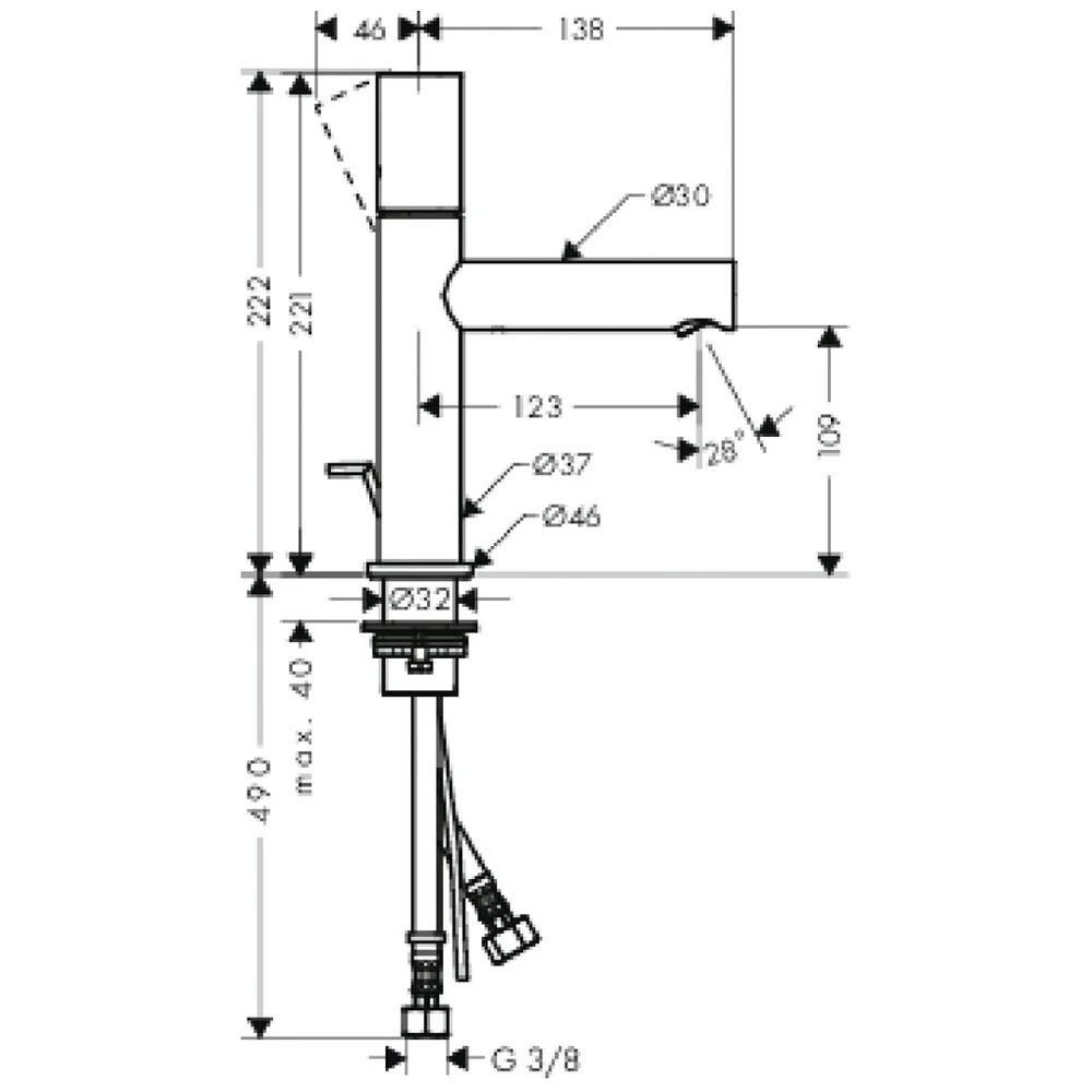 Eigenschaften: mit Zerogriff und Ablaufgarnitur ComfortZone 110 Ausladung 12,3 cm Laminarstrahl Durchflussmenge: 5 l/min Keramikmischsystem Temperaturbegrenzung einstellbar inkl. Zugstangen-Ablaufgarnitur (?) Zugstangen-Ablaufgarnitur Excenter-Garnitur ist der Ablauf unten im Waschbecken. G 1¼ für Durchlauferhitzer geeignet Anschlussart: G 3/8 Anschlussschläuche Anschlussgröße: DN15