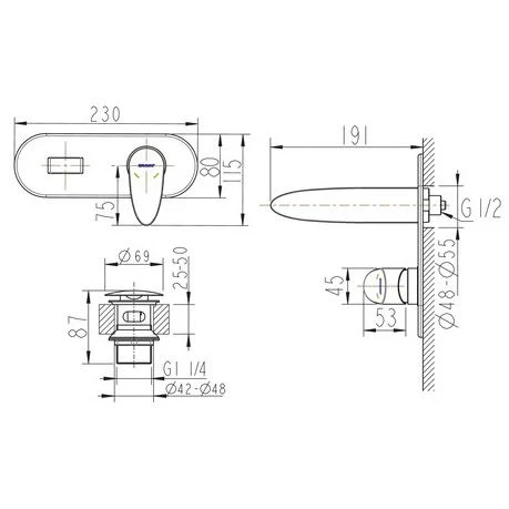 Eigenschaften: Ablaufgarnitur mit Klick-Funktion Keramikkartusche Rub Clean Reinigungsfunktion Unterputzelement Art. Nr. 3591001 bitte separat bestellen