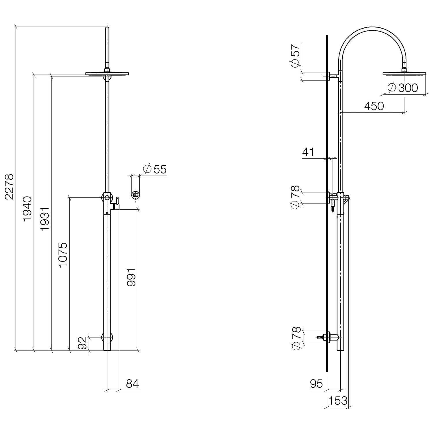 Eigenschaften: Duschstele mit Brause-Einhandbatterie Ausladung Standbrause 45 cm schwenkbar 180° Kopfbrause: Regenstrahl Regenbrause Ø 30 cm Regenbrause mit Antikalk-System Durchfluss Regenbrause max. 14 L/min Brausehalter mit Rosette Ø 7,8 cm Schubrosetten Ø 5,5 cm Metallbrauseschlauch 150 cm Höhe Armatur bis Oberkante Bogen 228 cm Höhe Armatur bis Regenbrause (Unterkante) 194 cm automatische Umstellung Standbrause/ Handbrause passt zu Meta, Tara., VAIA Wasserführende Bausatz-Vormontage an unterer Wandanbindung empfohlener Abstand Unterkante Duschstele-Boden 9,2 cm Eigensicher gegen Rückfließen Hinweis: dieser Artikel enthält keine Handbrause!