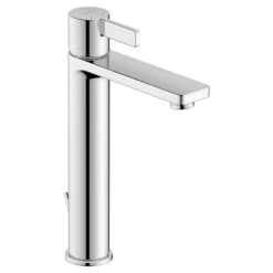 Understated yet expressive – the faucets also stand out thanks to their straight-lined, geometric shape. The characteristically narrow, vertically positioned handle is standard throughout the entire range. Washbasin mixers with the FreshStart feature are also available for the first time: cold water flows in the central position. Hot water is only added when the user deliberately moves the handle to the left, limiting the energy-intensive production of hot water to situations where it is actually needed.