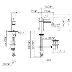 Dornbracht Lissé Waschtisch-Dreilochbatterie Mit Ablaufgarnitur