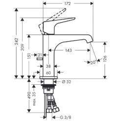 AXOR Citterio E Einhebel-Waschtischmischer 90 Für Handwaschbecken, Ohne Ablaufgarnitur