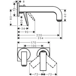 AXOR Edge 3-Loch Waschtischarmatur Unterputz Für Wandmontage, Diamantenschliff