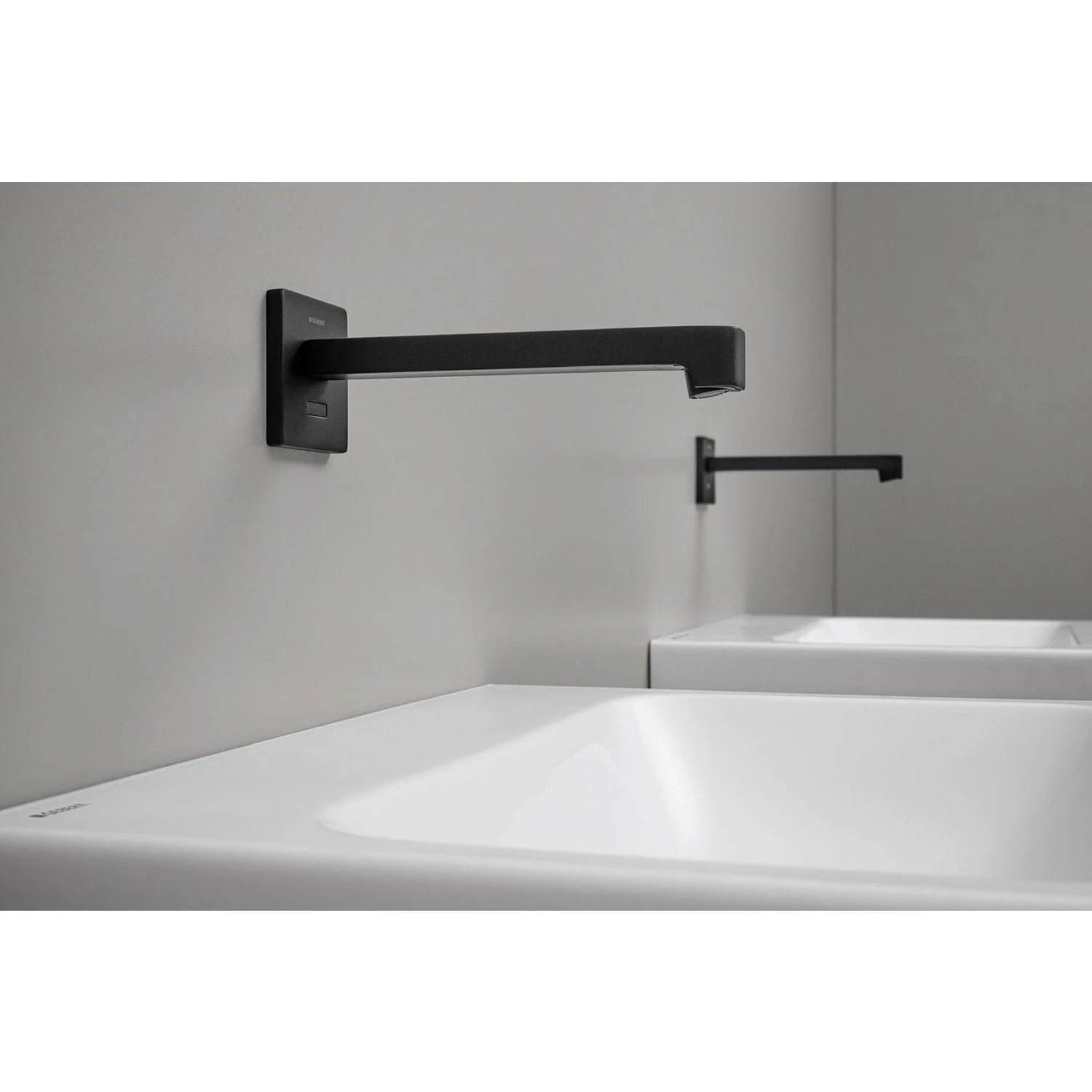Verwendungszwecke: Zur Entnahme von Leitungswasser Für öffentliche und halböffentliche Bereiche Zum Einbau in Geberit Montageelemente für Waschtisch, elektronische Wandarmatur mit UP-Funktionsbox Zum Anschließen von Kalt-, Warm- oder Mischwasser Für den Einsatz mit Edelstahlbecken Modell mit Mischer oder Thermostatmischer nicht geeignet für Durchlauferhitzer Für Beplankungsdicken 10–50 mm Eigenschaften: Armaturengruppe I nach DIN 4109 Automatische Spülauslösung Infrarotbenutzererkennung IR-Sensor selbsteinstellend Vandalensicher Volumenstrombegrenzung durch Strahlregler Temperatureinstellung über Mischer (nur bei Modell mit Mischer oder Thermostatmischer) Wasser nicht rein warm oder rein kalt einstellbar (nur bei Modell mit Mischer oder Thermostatmischer) Thermostat nach EN 1111 (nur bei Modell mit Thermostatmischer) Verbrühschutz durch Begrenzung der Wassertemperatur auf 42 °C (nur bei Modell mit Thermostatmischer) Thermische Desinfektion nach DVGW W 551 möglich Stromversorgung durch Batterie Batterie für ca. 200.000 Auslösungen ausreichend Warnung bei schwacher Batterie Energiesparmodus einstellbar Wasserersparnis durch reaktionsschnelle Zweistrahl-Abtasttechnik Funktionen mit Geberit Service-Handy einstellbar und abfragbar Geräteeinstellungen und Bedienung mit Mobilgerät über integrierte Bluetooth®-Schnittstelle Mit Geberit Control App kompatibel Drahtgebunden vernetzbar mit Geberit Gateway via GEBUS Konverter Drahtlos vernetzbar mit Geberit Gateway via Bluetooth® Mit Geberit Connect kompatibel Programm Wassersparen einstellbar Programm Intervallspülung einstellbar Dauerspülung individuell einstellbar Spülauslösung deaktivierbar Mit integriertem Rückflussverhinderer Funktionseinheit mit eingebauten Korbfiltern Werkstoff Messing/Kunststoff Lieferumfang: Waschtischarmatur Infrarotsensor mit Anschlusskabel Steuerelektronik Funktionseinheit Batteriefach 2 Alkali-Mangan-Batterien Typ AA 1.5 V Schlüssel für Strahlregler Befestigungsmaterial