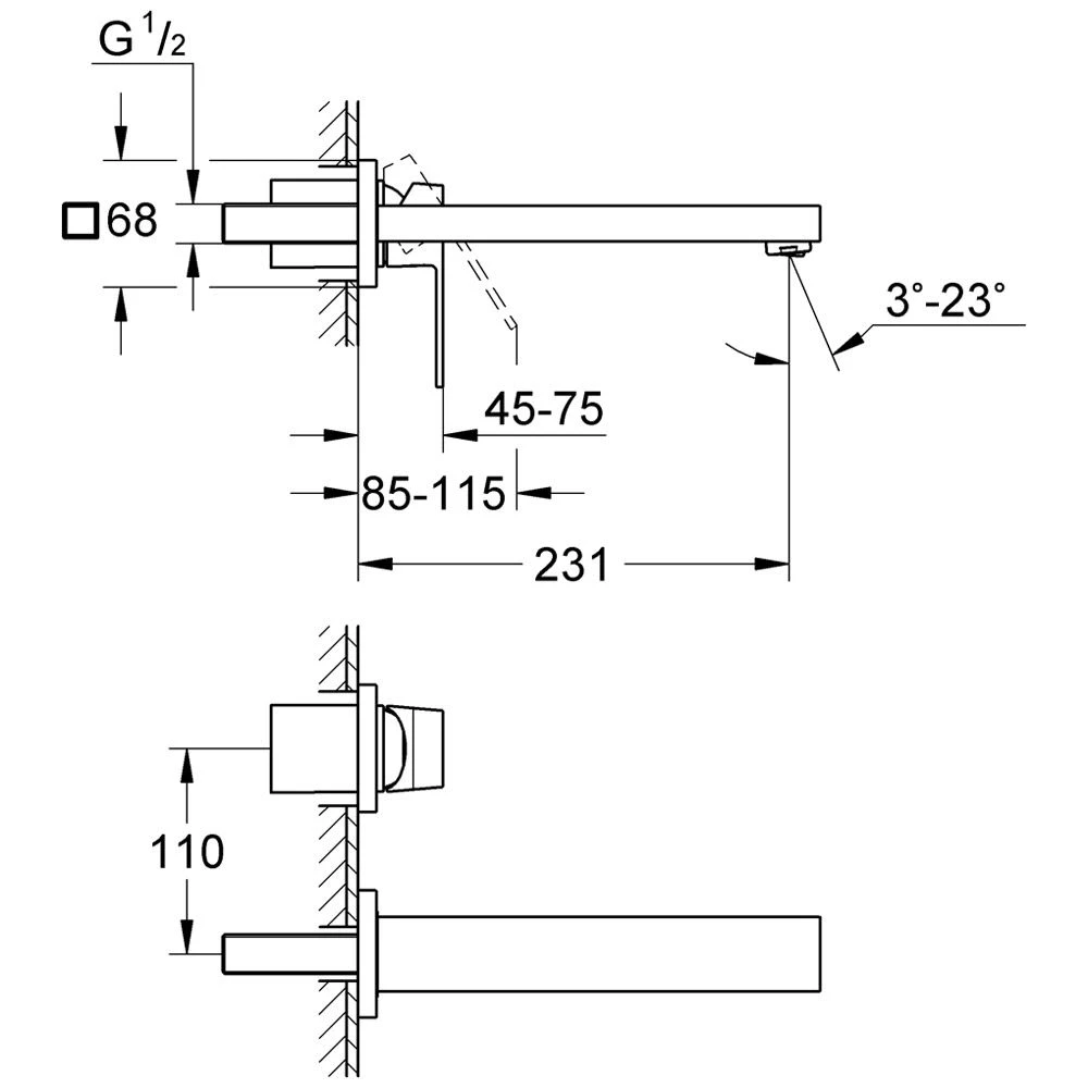 Eigenschaften: Fertigset für UP-Körper Art. 23200000 GROHE StarLigth® Chromoberfläche Starrauslauf mit 23,1 cm Ausladung mit verstelbarem GROHE-AquaGuide-Mousseur 5,7 L/ min Rosetten je 6,8 x 6,8 cm Stichmaß 11 cm Bedienungshebel aus Metall der erforderliche UP-Körper Art. 23200000 muss separat mitbestellt werden