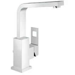 Eigenschaften: GROHE SilkMove® Keramikkartusche 28 mm GROHE StarLigth® Chromoberfläche schwenkbarer Rohrauslauf mit Anschlagsbegrenzung (je 45° nach links oder rechts) und SpeedClean 5,8 l Mousseur Zugstangen-Ablaufgarnitur (?) Zugstangen-Ablaufgarnitur Excenter-Garnitur ist der Ablauf unten im Waschbecken. 1 1/4″ flexible Anschlußschläuche Temperaturbegrenzer seitlicher Bedienungshebel aus Metall GROHE QuickFix® Plus Schnellbefestigungssystem