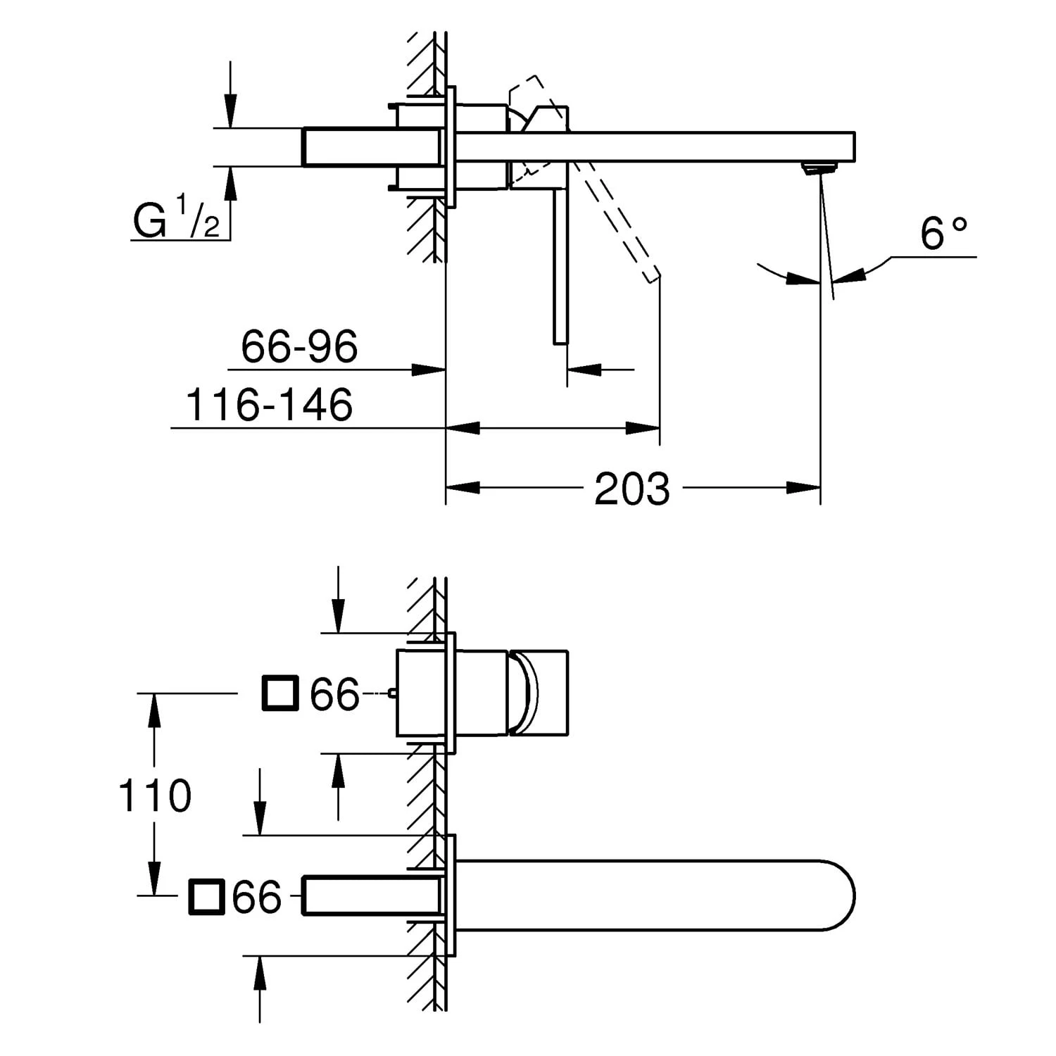 | Ausführung | 2-Loch-Waschtischbatterie, Wandmontage |