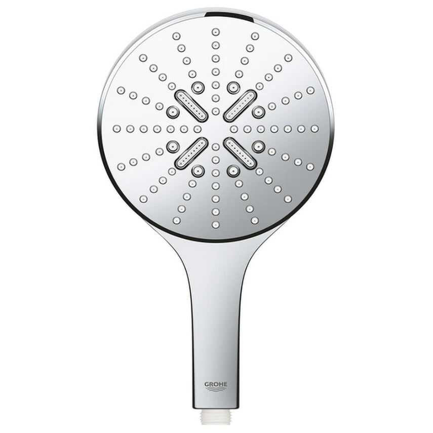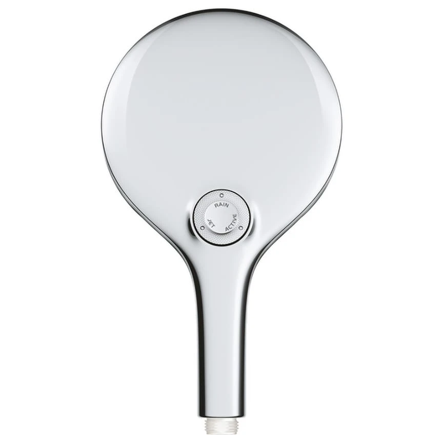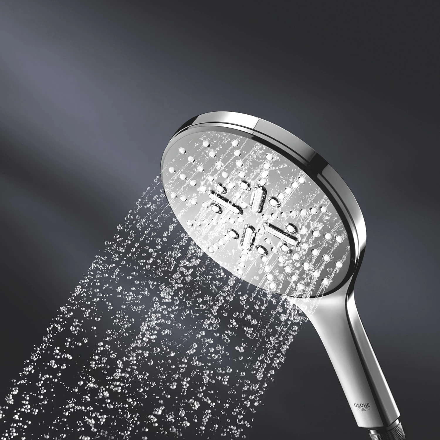 Eigenschaften: Brauseboden chrom GROHE Rain mit DripStop Jet mit DripStop Active Massage GROHE EcoJoy 9,5 l/min Durchflusskonstanthalter GROHE DremaSpray perfektes Strahlbild GROHE SmartTip Strahlumstellung per Tastendruck GROHE RainStart – Handbrause startet immer mit Rain Strahl GROHE StarLight Oberfläche SpeedClean Antikalk-System innenliegende separate Wasserführung Universal Befestigungssystem: Passend zu allen Standard-Brauseschläuchen