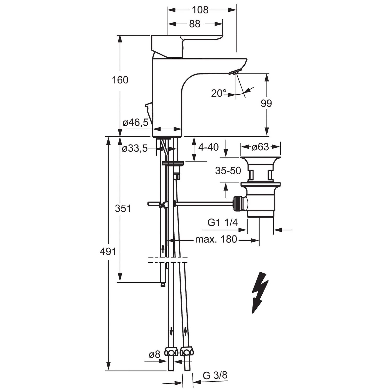 Ideal Standard Ceralife C Waschtischarmatur H100 BlueStart Push-Open Ventil
