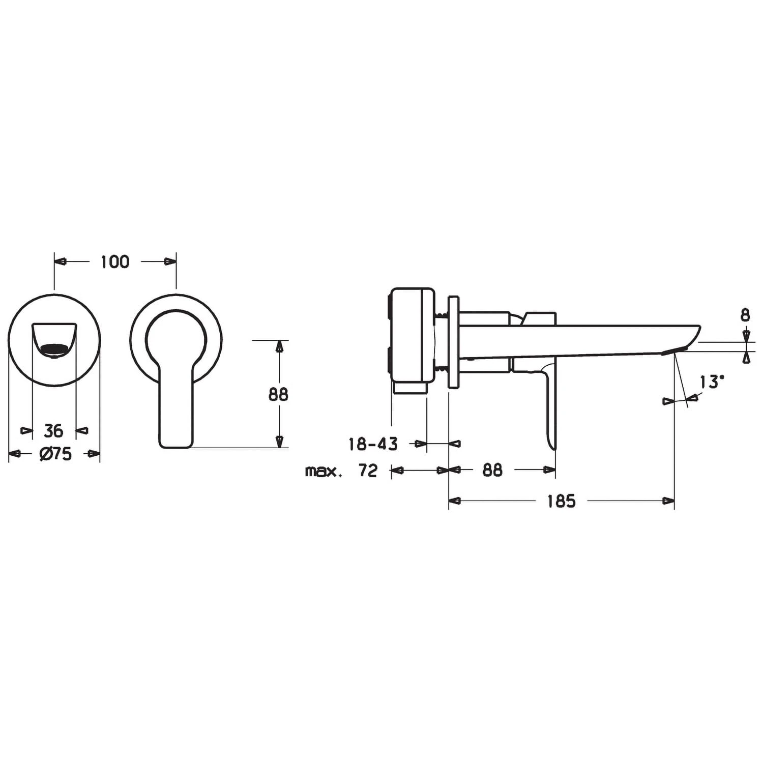 Eigenschaften: Durchflussmenge 6 l/min, gemessen bei 3 bar Fließdruck Bedienhebel aus Metall Hülse und Wandrosetten (Ø 7,5 cm) Ausladung 18,5 cm Auslauf gegossen Den passenden Hansa Unterputz Einbaukörper Art. 57860100 bitte separat bestellen.