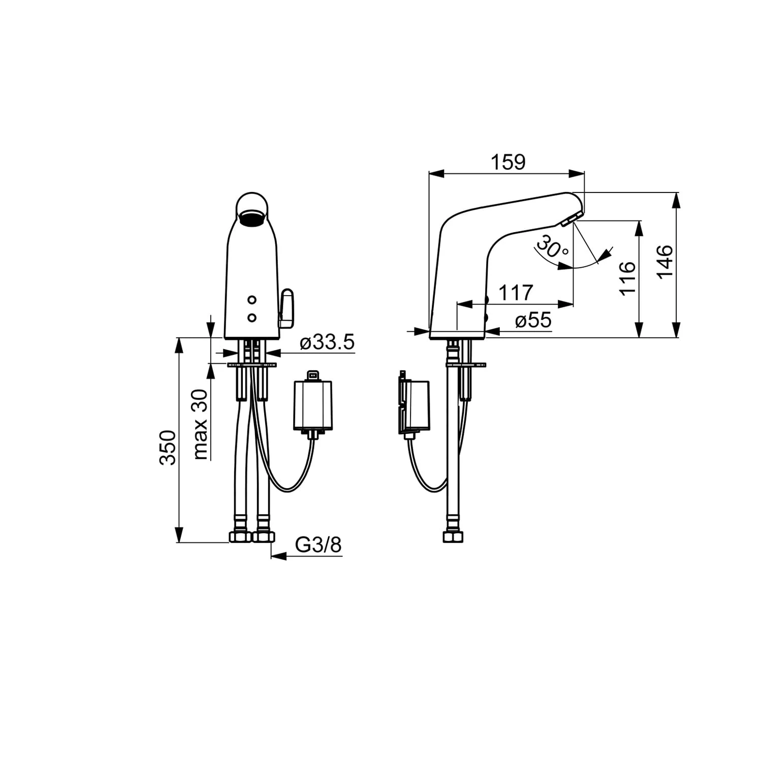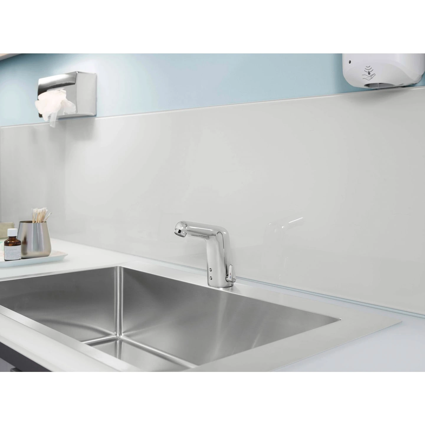 Eigenschaften: Standmontage berührungslos, Batteriebetrieb, Bluetooth® fähig Ausladung: 11,7 cm Strahlreglertyp: Kristallklarer Laminarstrahl Verbindung: Anschluss über flexible Druckschläuche, Spezialbeschichtung für hygienische Anforderungen Montage: 1-Loch Auslaufart: feststehender Auslauf, gegossen Temperatureinstellungen: Heißwassersperre einstellbar mechanische Teile: Mischventil zur manuellen Temperatureinstellung, Rückflussverhinderer, Schmutzfilter elektronisches Teil: PSD-Sensor mit Autofocus, Magnetventil, Batterie-Leer-Anzeige spezielle Eigenschaften: Armaturenkörper aus entzinkungsbeständigem Messing (DZR), Messing in Trinkwasserkontakt enthält weniger als 0,3% Blei Wasserwege ohne Nickelbeschichtung für kurze Zeitspannen thermisch desinfizierbar, Softwaresettings per CONNECT App änderbar ohne Ablaufgarnitur und ohne Zugstangenbohrung Nachlaufzeit: 3 s (1-20 s) Hygienespülung: off (off/1-120 h) automatische Spülung Dauer: 30 s (1-1800 s) max. Fließdauer: 2 min (1 – 1800 s) Operating distance: 2-13 cm (11/13/16 cm) Durchfluss bei 3 bar 6 l/min. Geräuschklasse: I (ISO 3822) Schutzklasse: IP 55 Zulassung: ABP: P-IX 29469/IO
