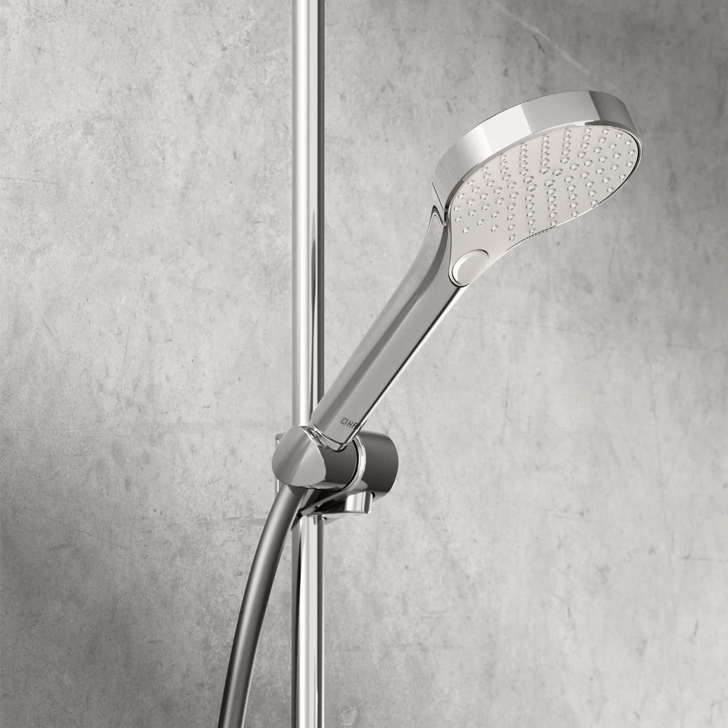 Eigenschaften: mit Anti-Kalk-Technologie: für einfache Reinigung und hohe Lebensdauer 3 Strahlarten: Normal-, Massage- u. Regenstrahl Normalstrahl: gleichmäßiger, weicher Wasserstrahl Massage-Strahl: starker Wasserstrahl durch drehbare Sprühdüsen Regenstrahl: gleichmäßiger und starker Wasserstrahl Arbeitsdruck: 50 – 500 kPa Warmwasser: max. +65°C EN Standard: EN1112 Geräuschklasse: I (ISO 3822) Anschlussgröße: G1/2