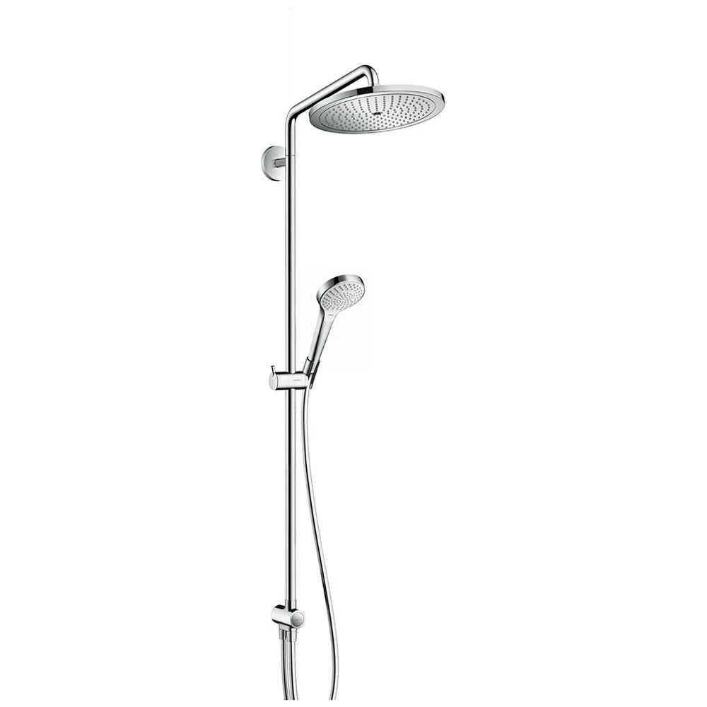 Eigenschaften: Besteht aus: Kopfbrause, Handbrause, Brauseschlauch, Schieber Kopfbrause Croma 280 Brausekopfgröße: 280 mm Kopfbrause im Winkel verstellbar Strahlart: RainAir Durchflussmenge RainAir Strahl (bei 3 bar): 10 l/min vollverchromte Strahlscheibe schwenkbarer Brausearm Brausearmlänge: 400 mm höhenverstellbare Handbrausehalterung Verbraucher: Kopfbrause, Handbrause Wasseranschluß: Isiflex Brauseschlauch 0,80 m Montageart: Aufputzinstallation Anschlussgewinde G ½ Anschlussgröße: DN15 Lieferumfang: Showerpipe Reno, Rosette, Befestigungsmaterial, Montageanleitung Bestehend aus: Brauseschlauch 160 cm (# 28276000) Brauseschlauch B 80 cm (# 28278000) Kopfbrause 280 1jet (# 26220000) Handbrause Multi (# 26800400)