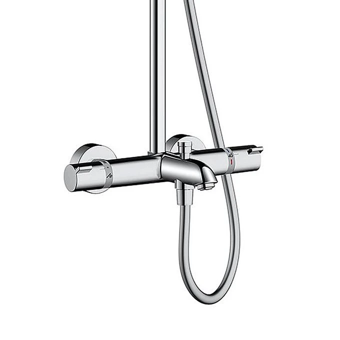 Eigenschaften: Besteht aus: Kopfbrause, Handbrause, Wannenthermostat, Brauseschlauch, Schieber um 45° verstellbarer Neigungswinkel des Schiebers Kopfbrause Crometta S 240 Brausekopfgröße: 240 mm Kopfbrause im Winkel verstellbar Strahlart: Rain Durchflussmenge Rain Strahl (bei 3 bar): 17 l/min Betriebsdruck: min. 1,5 bar/max. 10 bar vollverchromte Strahlscheibe Brausearmlänge: 350 mm Thermostat Ecostat Comfort Durchflussmenge Wanneneinlauf: 20 l/min Sicherheitssperre bei 40° C einstellbare Heißwasserbegrenzung Verbraucheransteuerung durch Drehen Montageart: Aufputzinstallation Anschlussgröße DN15 Anschlussgewinde R ½ Stichmaß 150 ± 12 mm höhenverstellbare Handbrausehalterung Lieferumfang: Showerpipe mit Wannenthermostat, Rosetten, S-Anschlüsse, Befestigungsmaterial, Montageanleitung Bestehend aus: Isiflex Brauseschlauch 160 cm (28276XXX) Crometta S 240 1jet Kopfbrause (26723000) Crometta Vario Handbrause (263304000)