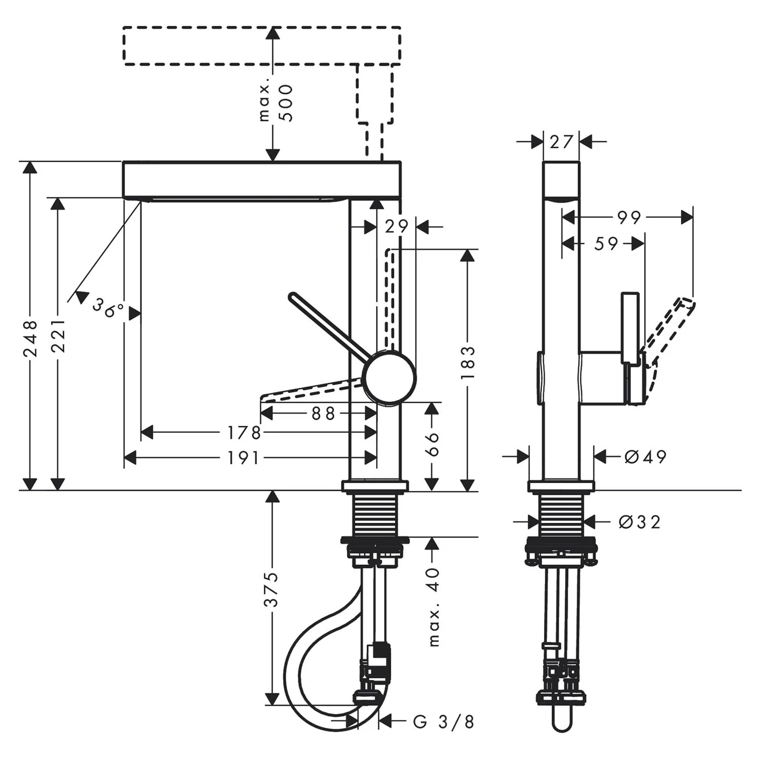 | Ausführung | Standmontage mit Ausziehbrause+2 Strahlarten |