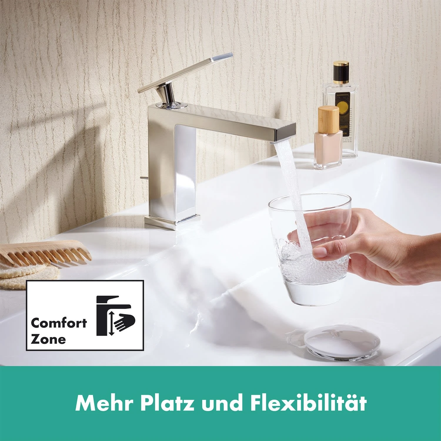 Eigenschaften: Tecturis E kombiniert ausdrucksstarkes, puristisches Design mit maximalem Komfort extra nachhaltig: EcoSmart+ nutzt nur 4 l/min (bei 3 bar) und damit 20 % weniger Wasser als hansgrohe EcoSmart Energie sparen: steht der Hebel in der Mitte, kommt ausschließlich Kaltwasser. Erst wenn er nach links gedreht wird, fließt Warmwasser (CoolStart) diese Armatur reichert Wasser mit Luft an – für einen vollen Wasserstrahl, der weniger spritzt (AirPower) einfach installiert: die Armatur wird über flexible Schläuche mit den Wasseranschlüssen verbunden (G 3/8) bewährt: die mitgelieferte Zugstangen-Ablaufgarnitur (?) Zugstangen-Ablaufgarnitur Excenter-Garnitur ist der Ablauf unten im Waschbecken. lässt sich bequem mit einer Hand öffnen und schließen glänzender Auftritt: die brillante Chromoberfläche überzeugt mit dauerhaftem Glanz besonders langlebig: ausgestattet mit hochwertigem, leichtgängigem Keramikmischsystem von hansgrohe auch für Durchlauferhitzer geeignet: diese Armatur lässt sich vielseitig einsetzen Lieferumfang: Einhebel-Waschtischmischer, Anschlussschläuche, Befestigungsmaterial, Montageanleitung In allen Bestandteilen sind Premium-Materialien verbaut – für mehr Sicherheit und Nachhaltigkeit im Haushalt hansgrohe seit 1901 – die Premium-Marke für zuverlässige Bad- und Küchenprodukte 5 Jahre freiwillige Herstellergarantie auf ein Produkt, das nach höchsten Qualitätsstandards gefertigt wurde