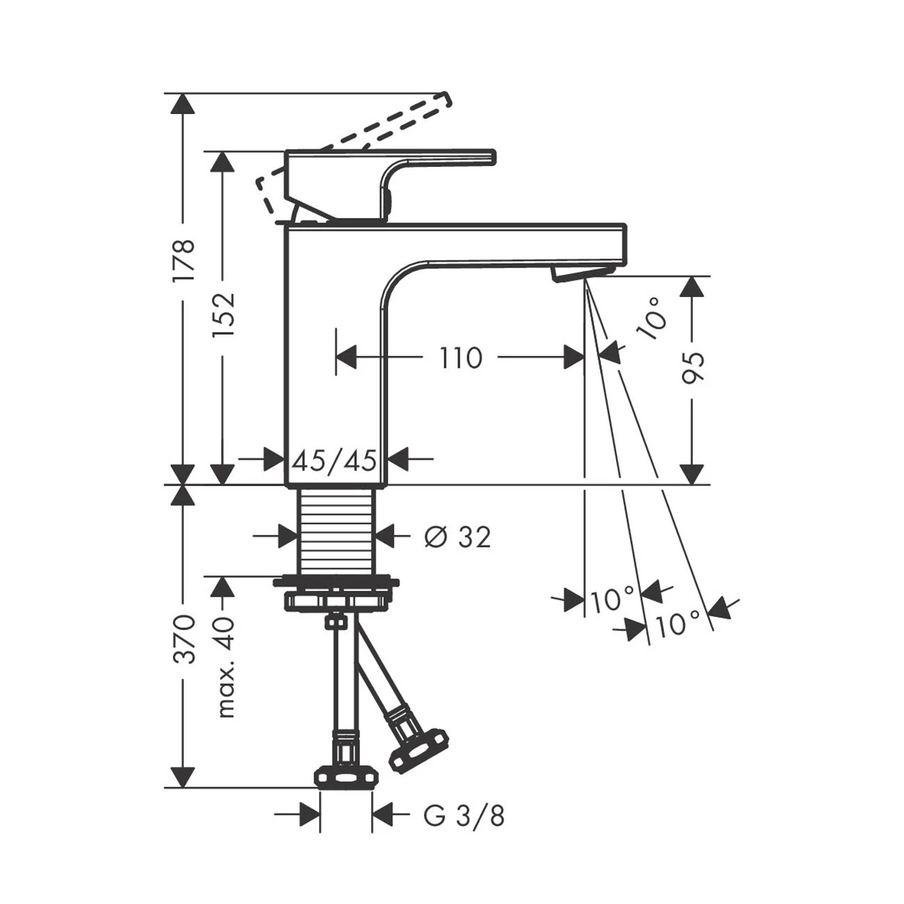 Design-Statement von hansgrohe: Vernis Shape 100 Waschtischarmatur mit CoolStart und Push-Open-Ablauf Der Vernis Einhebel-Waschtischmischer 100 CoolStart mit Push-Open-Ablaufgarnitur von hansgrohe macht als vielseitiger Allrounder eine gute Figur an jedem Waschbecken. Die präzise, geometrische Form ist zeitlos modern und ein Fest für die Sinne. Freuen Sie sich zudem auf zahlreiche Komfortfunktionen, mit denen Ihre neue Vernis Armatur Ihr Leben leichter macht. Markenqualität günstig kaufen Ausgestattet mit langlebigem hansgrohe Keramikmischsystem Hilft beim Energiesparen: Steht der Hebel in der Mitte, fließt Kaltwasser. Erst wenn er nach links gedreht wird, fließt Warmwasser (CoolStart) Für einen vollen Wasserstrahl, der weniger spritzt, wird Wasser mit Luft angereichert (AirPower) Mit Ablaufgarnitur: Der Push-Open-Ablauf wird über einen Druckstopfen bedient. Ohne Hebel an der Rückseite wirkt das Design noch eleganter Weitere Besonderheiten Wasser sparen? Mit Vergnügen! Dank eines EcoSmart-Durchflussbegrenzers fließen max. 5 l/min (3 bar) Qualität von hansgrohe, abgesichert durch 5 Jahre freiwillige Herstellergarantie Eigenschaften: Starkes Design: Vernis Shape Armaturen begeistern mit einem spannenden Mix aus Kanten und Rundungen Energiesparen: Steht der Hebel in der Mitte, fließt Kaltwasser. Erst wenn er nach links gedreht wird, fließt Warmwasser (CoolStart) Alles im Griff: Ausgestattet mit langlebigem hansgrohe Keramikmischsystem Für einen vollen Wasserstrahl, der weniger spritzt, reichert diese Armatur Wasser mit Luft an (AirPower) Einfach eingebaut: Die Armatur wird über flexible Schläuche mit den Wasseranschlüssen verbunden (G 3/8) 5 Jahre freiwillige Herstellergarantie auf ein Produkt, das nach höchsten Qualitätsstandards gefertigt wurde Mit Ablaufgarnitur: Der Push-Open-Ablauf wird über einen Druckstopfen bedient. Ohne Hebel an der Rückseite wirkt das Design noch eleganter Extra sicher: Eine bei Montage einstellbare Temperaturbegrenzung schützt vor zu heißem Wasser Für Durchlauferhitzer geeignet: Diese Armatur lässt sich vielseitig einsetzen Lieferumfang: Einhebel-Waschtischmischer, Schaftbefestigung, Anschlussschläuche, Montageanleitung In allen Bestandteilen sind Premium-Materialien verbaut – für mehr Sicherheit und Nachhaltigkeit im Haushalt hansgrohe seit 1901 – die Premium-Marke für zuverlässige Bad- und Küchenprodukte