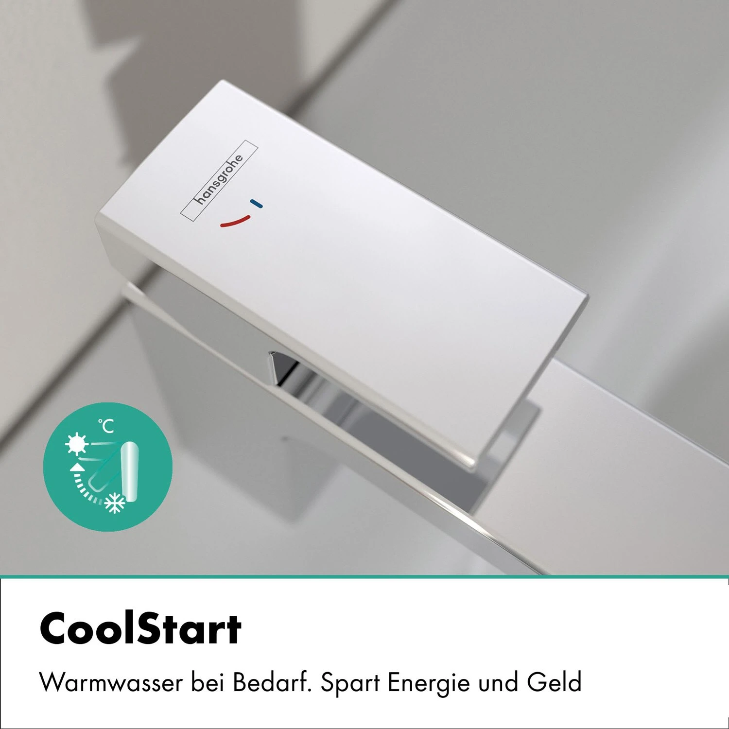 Design-Statement von hansgrohe: Vernis Shape 70 Waschtischarmatur mit CoolStart und Push-Open-Ablauf Der kompakte Vernis Einhebel-Waschtischmischer 70 CoolStart mit Push-Open-Ablaufgarnitur von hansgrohe macht eine gute Figur an einem Handwaschbecken oder im Gästebad. Die präzise, geometrische Form ist zeitlos modern und ein Fest für die Sinne. Freuen Sie sich zudem auf zahlreiche Komfortfunktionen, mit denen Ihre neue Vernis Armatur Ihr Leben leichter macht. Markenqualität günstig kaufen Ausgestattet mit langlebigem hansgrohe Keramikmischsystem Hilft beim Energiesparen: Steht der Hebel in der Mitte, fließt Kaltwasser. Erst wenn er nach links gedreht wird, fließt Warmwasser (CoolStart) Für einen vollen Wasserstrahl, der weniger spritzt, wird Wasser mit Luft angereichert (AirPower) Mit Ablaufgarnitur: Der Push-Open-Ablauf wird über einen Druckstopfen bedient. Ohne Hebel an der Rückseite wirkt das Design noch eleganter Weitere Besonderheiten Wasser sparen? Mit Vergnügen! Dank eines EcoSmart-Durchflussbegrenzers fließen max. 5 l/min (3 bar) Qualität von hansgrohe, abgesichert durch 5 Jahre freiwillige Herstellergarantie Eigenschaften: Starkes Design: Vernis Shape Armaturen begeistern mit einem spannenden Mix aus Kanten und Rundungen Energiesparen: Steht der Hebel in der Mitte, fließt Kaltwasser. Erst wenn er nach links gedreht wird, fließt Warmwasser (CoolStart) Alles im Griff: Ausgestattet mit langlebigem hansgrohe Keramikmischsystem Für einen vollen Wasserstrahl, der weniger spritzt, reichert diese Armatur Wasser mit Luft an (AirPower) Einfach eingebaut: Die Armatur wird über flexible Schläuche mit den Wasseranschlüssen verbunden (G 3/8) 5 Jahre freiwillige Herstellergarantie auf ein Produkt, das nach höchsten Qualitätsstandards gefertigt wurde Mit Ablaufgarnitur: Der Push-Open-Ablauf wird über einen Druckstopfen bedient. Ohne Hebel an der Rückseite wirkt das Design noch eleganter Extra sicher: Eine bei Montage einstellbare Temperaturbegrenzung schützt vor zu heißem Wasser Für Durchlauferhitzer geeignet: Diese Armatur lässt sich vielseitig einsetzen Lieferumfang: Einhebel-Waschtischmischer, Schaftbefestigung, Anschlussschläuche, Montageanleitung In allen Bestandteilen sind Premium-Materialien verbaut – für mehr Sicherheit und Nachhaltigkeit im Haushalt hansgrohe seit 1901 – die Premium-Marke für zuverlässige Bad- und Küchenprodukte