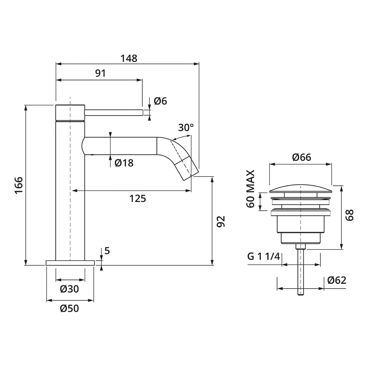 Herzbach DEEP IX Waschtischmischer XL-Size 13 Cm Mit PUSH-Ablaufventil