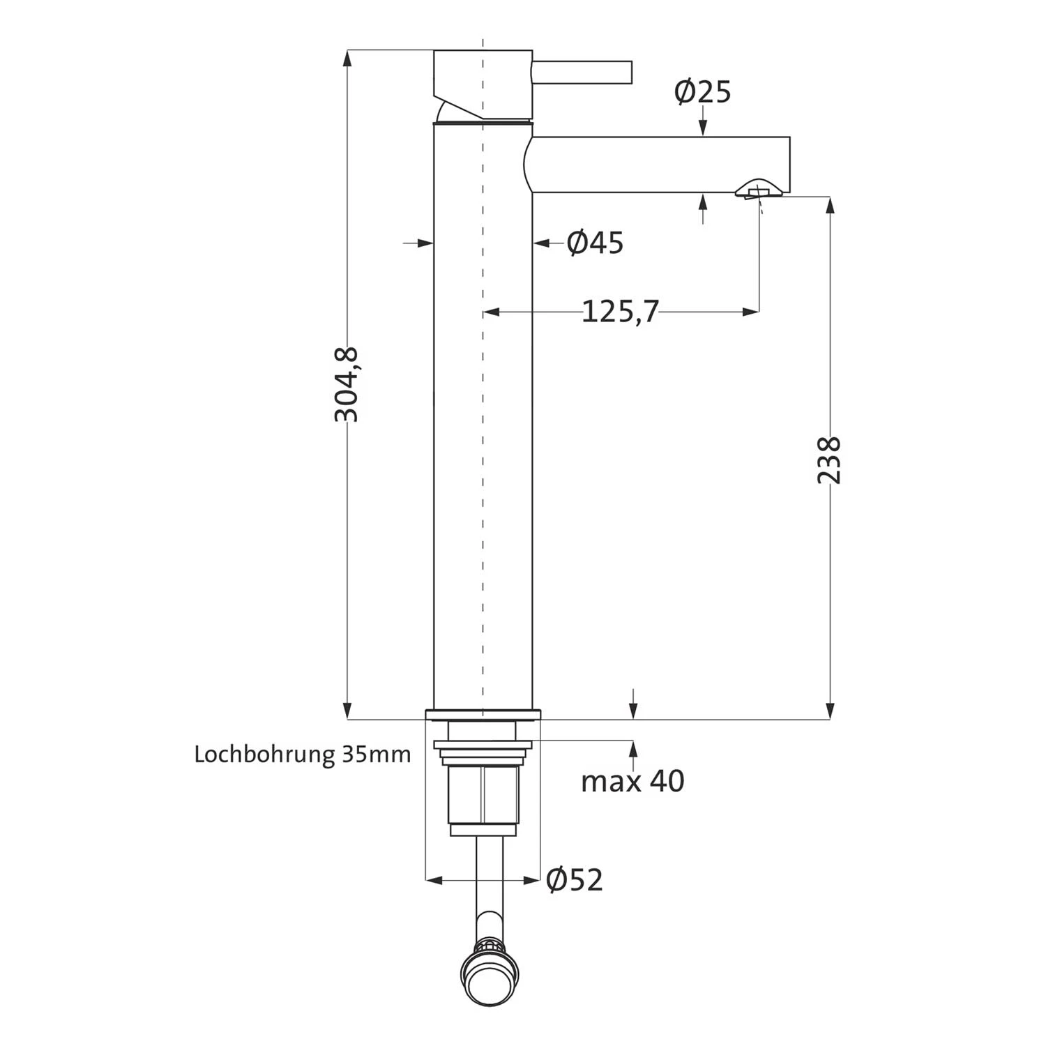 Herzbach DEEP IX Waschtischmischer XL-Size 13 Cm Mit PUSH-Ablaufventil