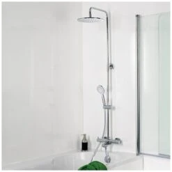Eigenschaften: mit Sicherheits-Badewannen-Thermostatarmatur mit 38°C-Sperre und integriertem Funktionsumsteller schwenkbare Regenbrause Ø 25 cm Höhe der Regenbrause individuell justierbar Anti-Kalk-Funktion separate Design-Handbrause mit 3 Strahlarten: Rain, SoftRain, Massage höhenverstellbare Halterung an der Brausestange inkl. Montagezubehör