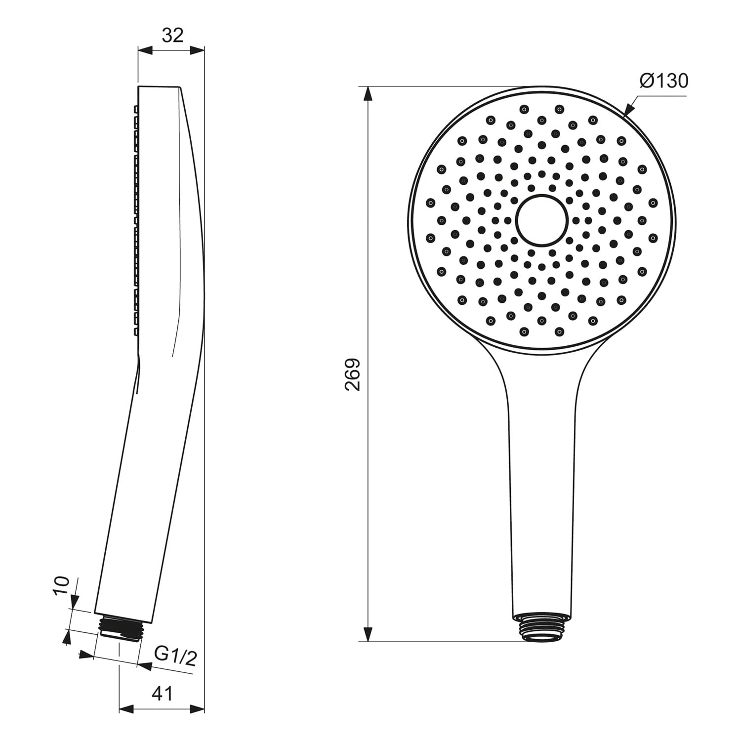 Die Idealrain Solos Handbrause von Ideal Standard vereint stilvolles Design mit nachhaltiger Funktionalität. Solos ist eine innovative Kollektion von Badezimmerlösungen, die minimalistisches Design mit fortschrittlichen Technologien verbindet. Sie verkörpert die Schönheit der Einfachheit und bietet gleichzeitig zeitgemäßen Komfort und Luxus. Das moderne Design fügt sich nahtlos in jedes Badezimmerambiente ein. Eigenschaften: mit 1-Funktion Ø 13 cm mit EasyClean Durchfluss bei 3 bar: 6 l/min.