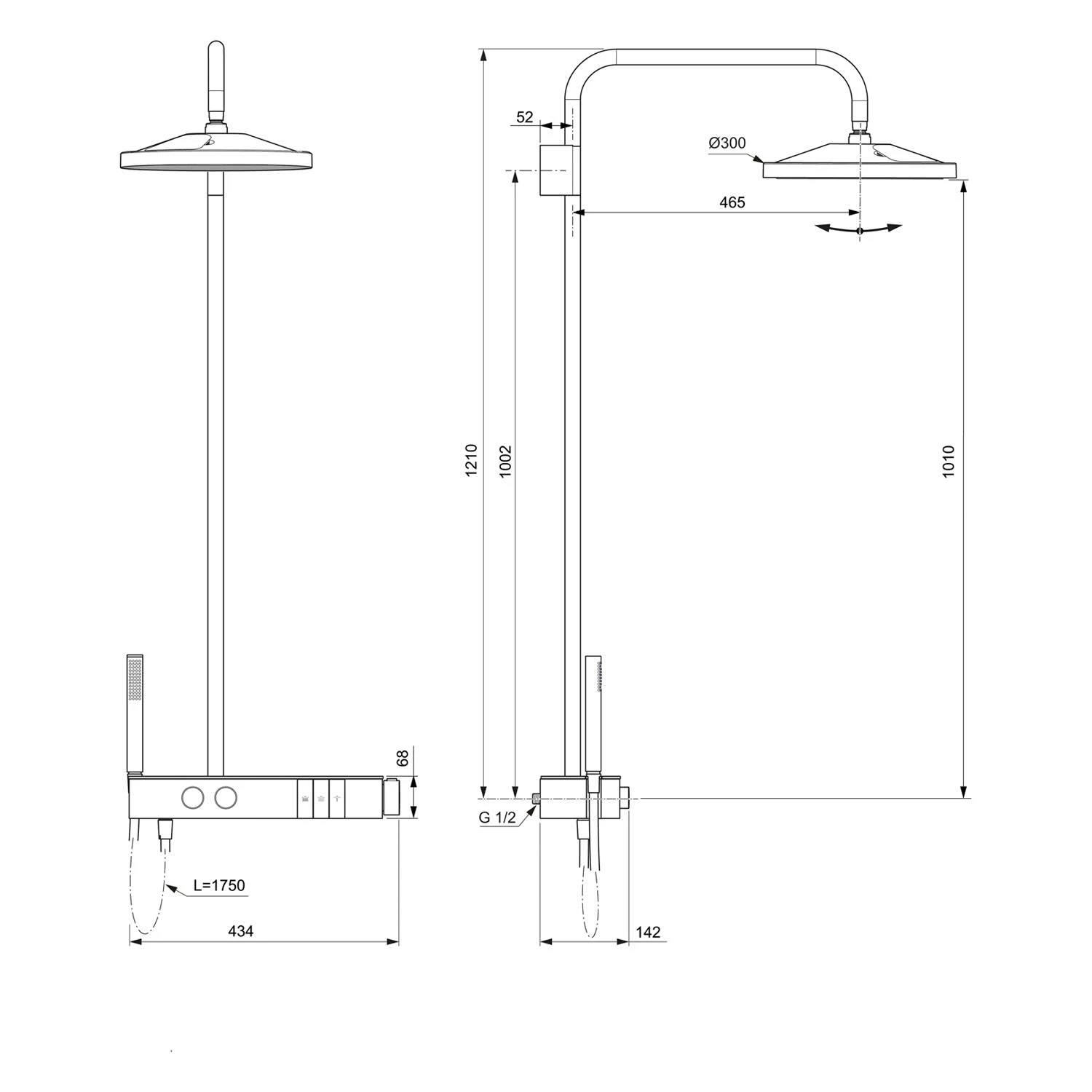 bestehend aus: Duschsystem: Aufputz DN 15 Regenbrause Ø 30 cm mit Kugelgelenk EasyClean Stabhandbrause: 1 Funktion EasyClean Wasserführende Brausestange Inklusive Wandbefestigung Brauseschlauch Idealflex 175 cm Anschluss G1/2 Brausethermostat: Aufputz DN 15 mit Ablage aus Sicherheitsglas S-Anschlüsse (verstellbar) Griffe aus Metall Kartusche keramisch Heißwassertemperaturbegrenzer Heißwassertemperatureinstellung mit Verbrühschutz individuelle Volumenregelung für Hand- und Regenbrause Öffnen/Schließen mittels Navigo Druckknopftechnologie beide Abgänge einzeln oder gleichzeitig nutzbar Geräuschverhalten DIN 4109: Gruppe 1