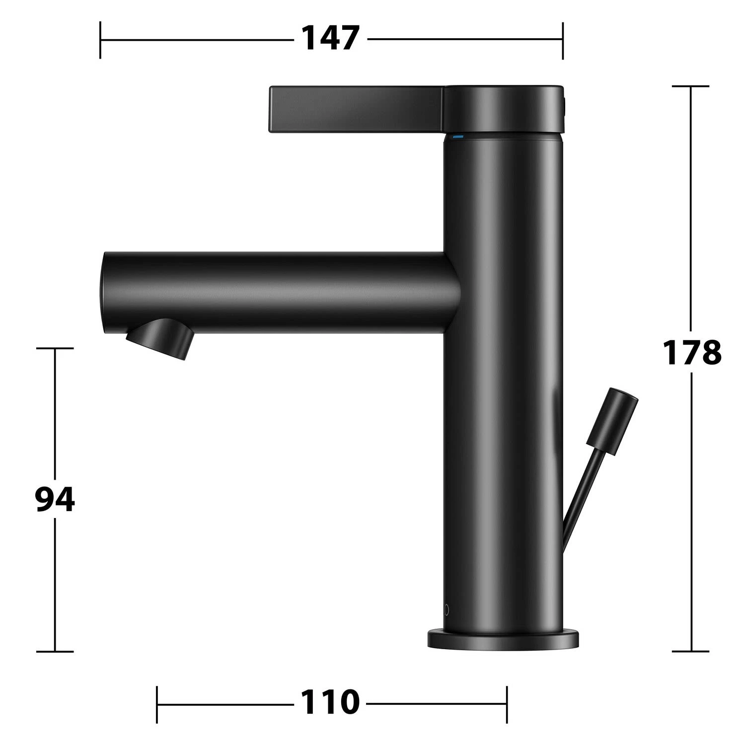 Herzbach DEEP IX Waschtischmischer XL-Size 13 Cm Mit PUSH-Ablaufventil