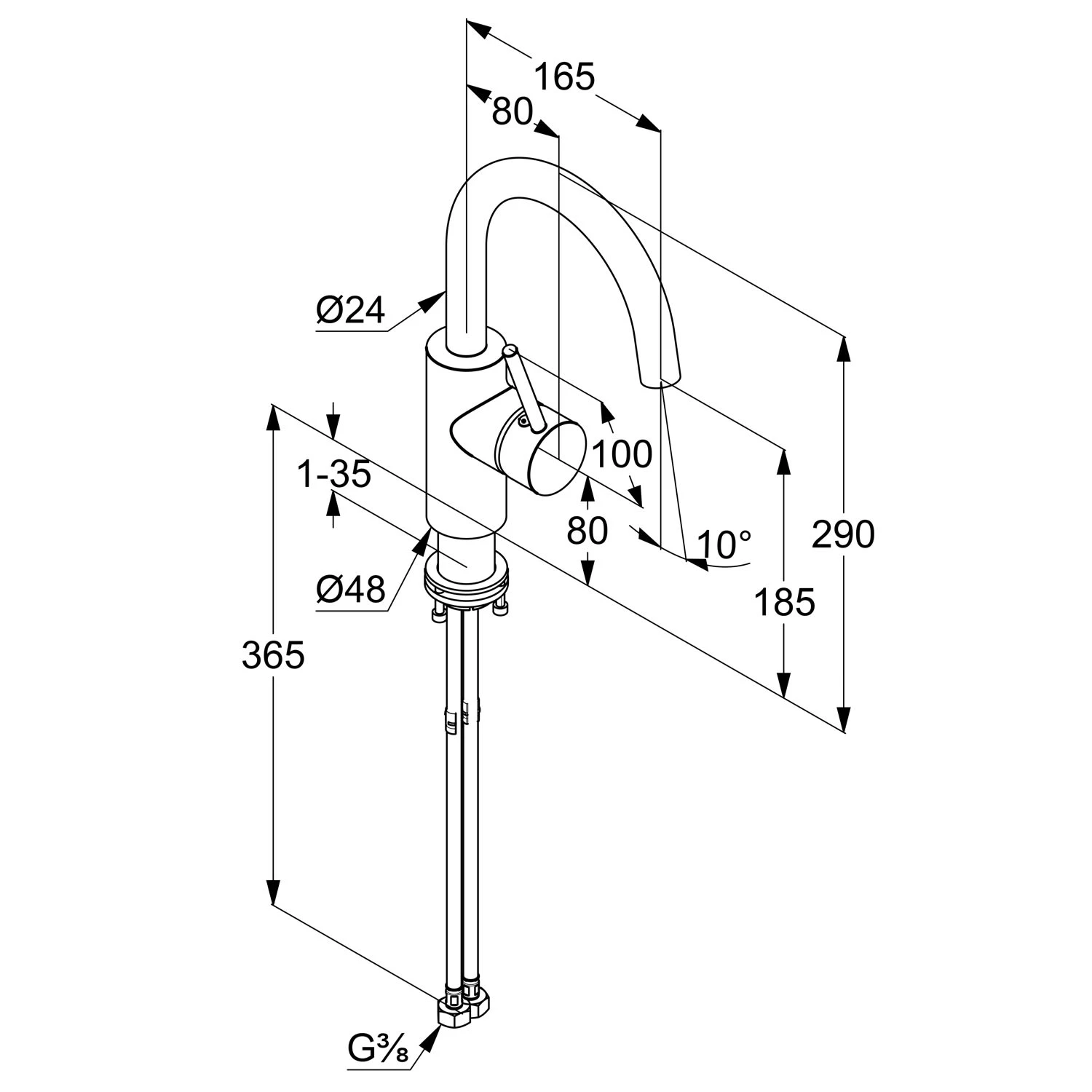 Eigenschaften: Waschtisch-Einhandmischer DN 15 geschlossener Hebel Einlochmontage Durchflussmenge 5 l/min bei 3 bar Keramik-Kartusche mit Heißwasserbegrenzung schwenkbarer Auslauf ohne Ablaufgarnitur Schnell-Montagesystem mit Schaftbefestigung flexible Anschlüsse G 3/8 Auslaufhöhe Unterkante 18,5 cm