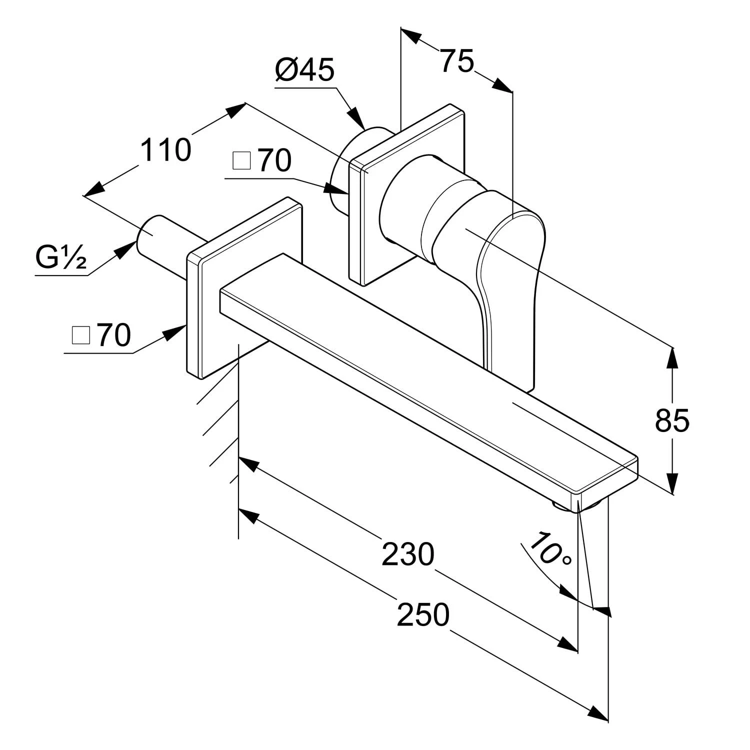 Eigenschaften: Unterputz-Waschtisch-Zweiloch-Wand-Einhandmischer Feinbau-Set Zweiteilige Rosette geschlossener Hebel Strahlregler M 24 x 1 Durchflussmenge 7 l/min bei 3 bar Ausladung Wandauslauf 23 cm