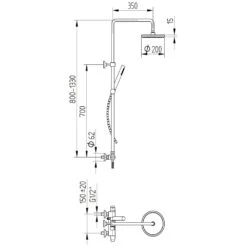 Eigenschaften: mit Thermostat Stichmaß Thermostat: 15 cm +- 2 cm Kopfbrause Durchmesser: 20 cm Brauseschlauch: 150 cm mit ColdTouch Griff höhenverstellbares Rohr: 80 – 115 cm Handbrause mit 1 Strahlart Durchflussmenge 9 Liter/Min.