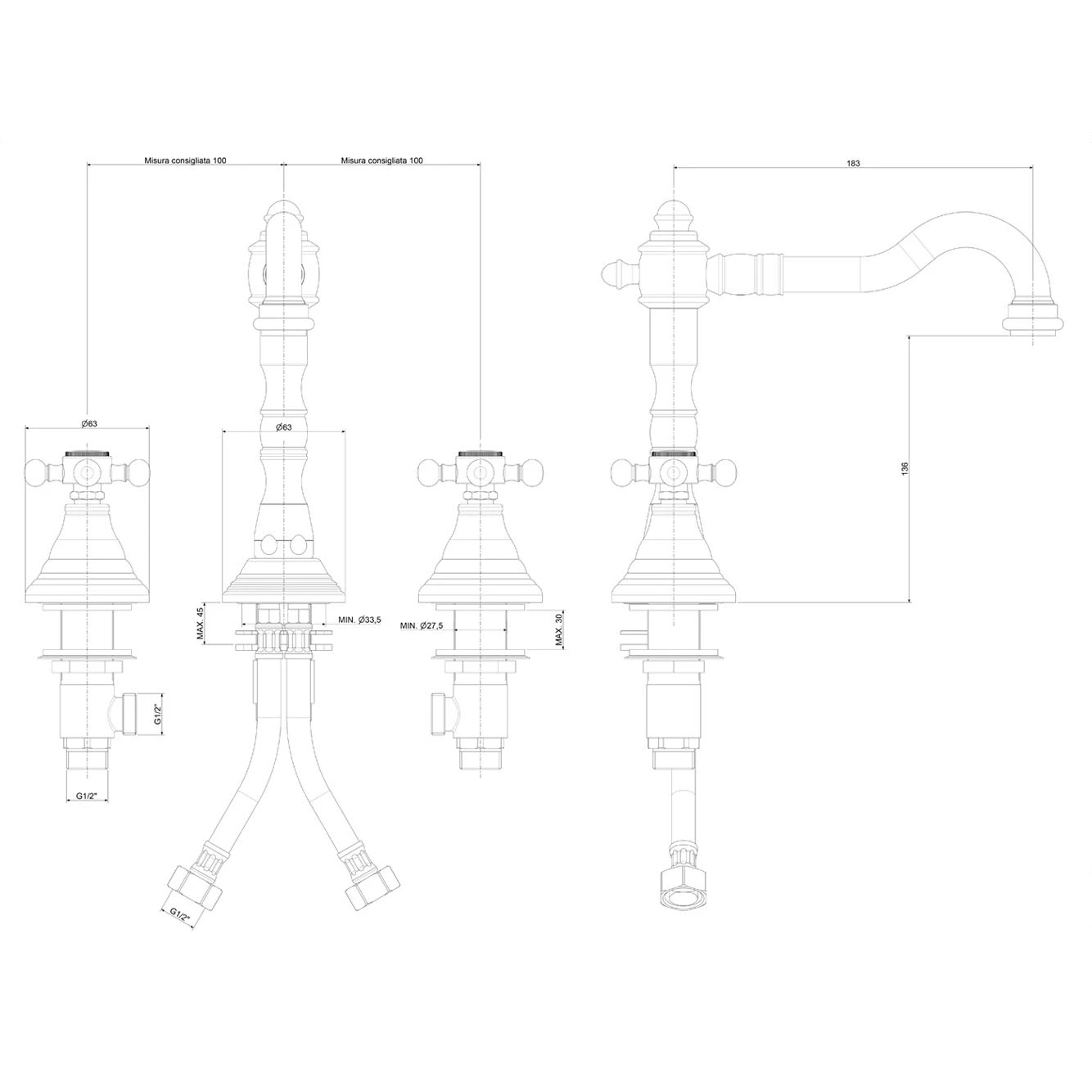 Eigenschaften: Ausladung 18,3 cm Luftsprudler M22 x 1 fexibiler 1/2″ Auslauf inkl. Edelstahl-Anschlussschläuchen 3/8″ G Ablaufgarnitur 1 1/4″