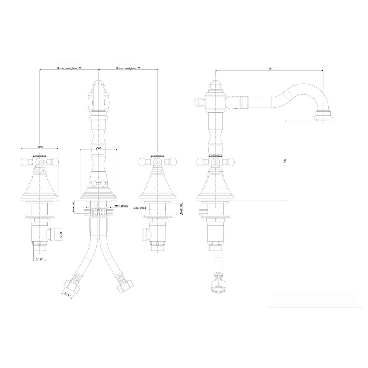 Eigenschaften: Ausladung 18,3 cm Luftsprudler M22 x 1 fexibiler 1/2″ Auslauf inkl. Edelstahl-Anschlussschläuchen 3/8″ G