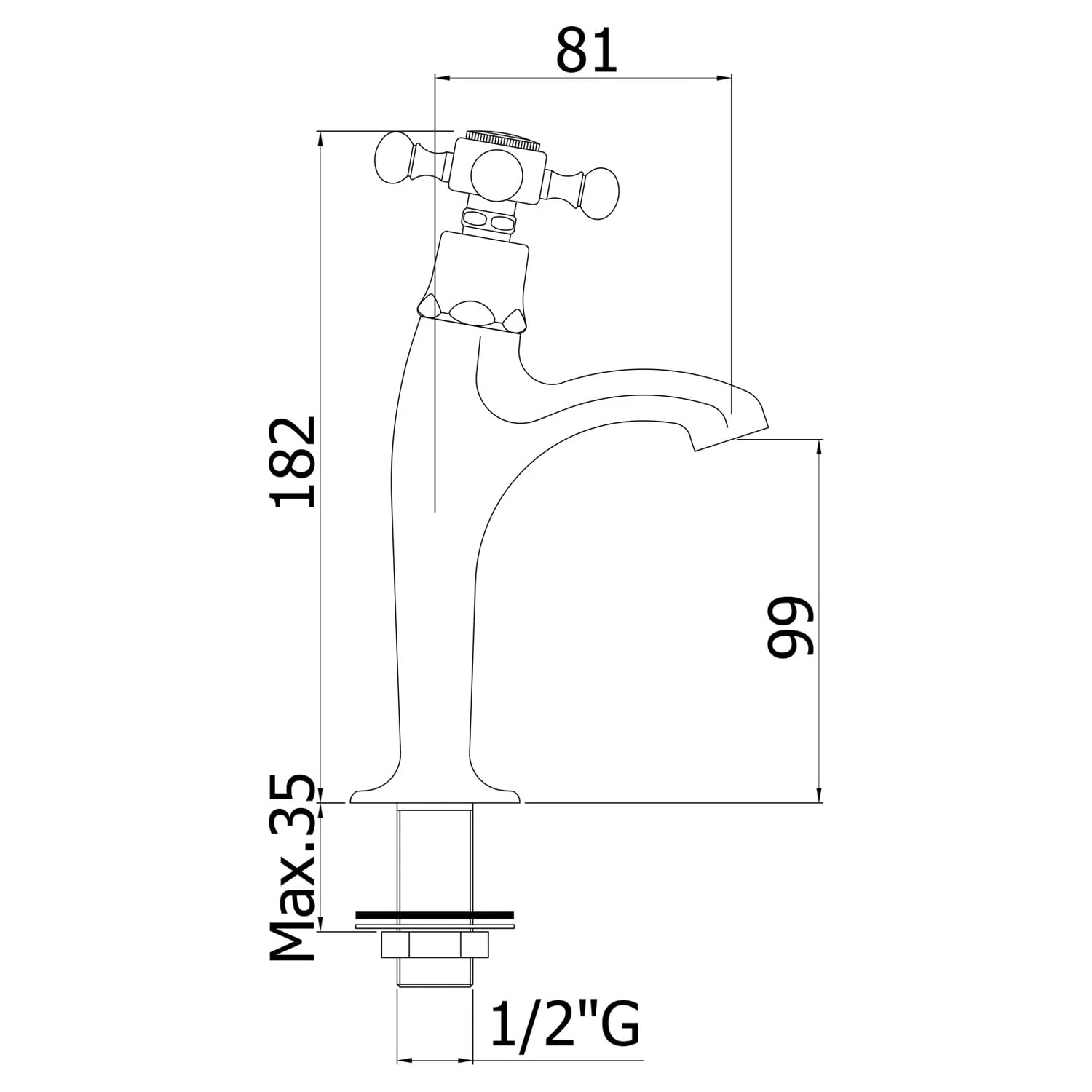 Eigenschaften: Ausladung 8,1 cm Anschluss 1/2″