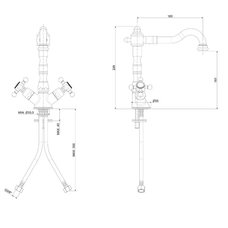 Eigenschaften: Ausladung 18,3 cm Luftsprudler M22 x 1 inkl. Edelstahl-Anschlussschläuchen 3/8″ G Ablaufgarnitur 1 1/4″