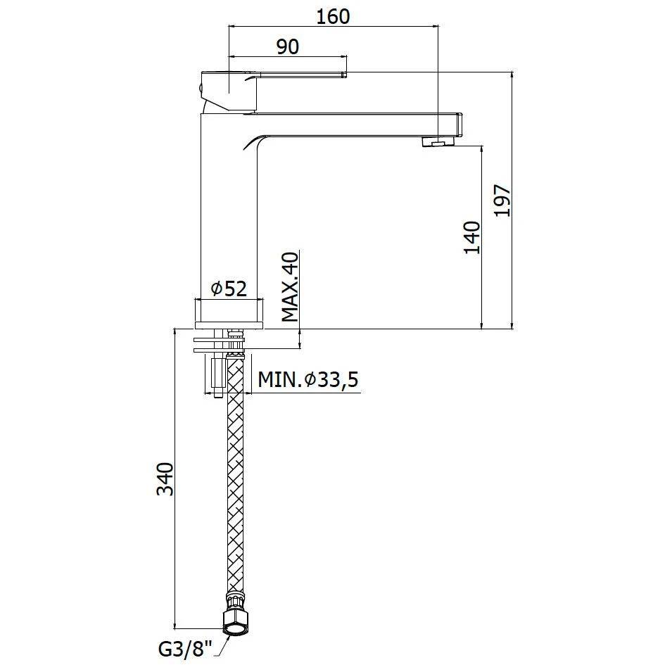 Eigenschaften: mit flexiblen Anschlusschläuchen 3/8″ aus Edelstahl