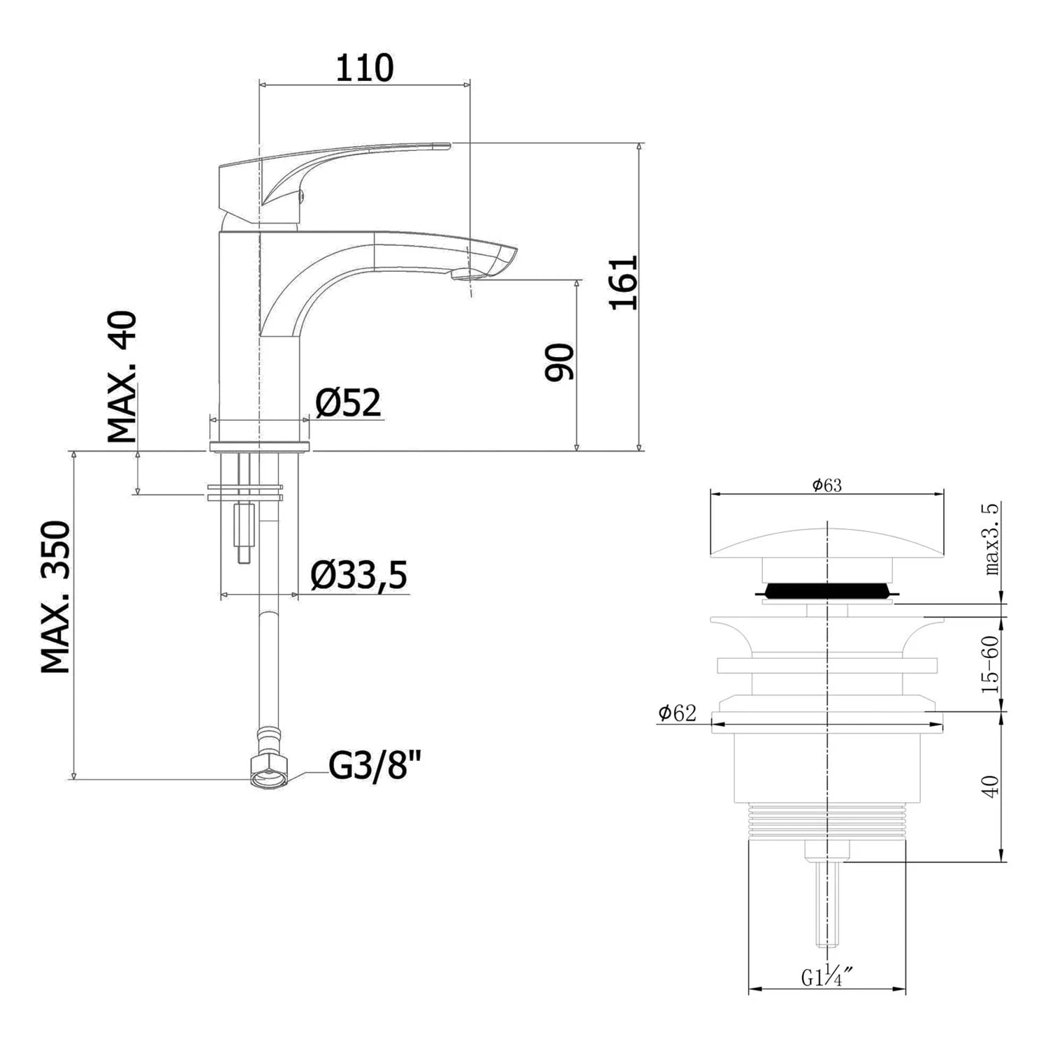 bestehend aus: 1x Kronenbach Rivara Waschtisch-Einhebelmischer, wassersparend 1x Kronenbach Pop Up Ablaufventil rund, kurz Kronenbach Rivara Waschtisch-Einhebelmischer: Wassersparend : Bis zu 50 % weniger Wasserverbrauch durch eine begrenzte Durchflussmenge von maximal 5 l/min Angenehmer Wasserstrahl : Der Luftsprudler erzeugt einen sanften und vollen Wasserstrahl Langlebige Technik : Einfache Bedienung dank hochwertiger und langlebiger Keramikmischkartusche Einfache Installation : Flexible Schläuche (G3/8″) ermöglichen den unkomplizierten Anschluss an die bauseitigen Eckventile Ergonomisches Design : Komfortabler Nutzungsbereich unter dem Auslauf Sichere Befestigung : Einfache und präzise Montage durch hochwertige Befestigungtechnik Hochwertige Oberfläche : Robuste Hochglanz verchromte Oberfläche für langlebige Eleganz Pop Up Ablaufventil: Verstellbereich: 15 – 60 mm für Waschtisch mit Überlauf Material: Messing, verchromt Anschluss: 1 1/4″ DN 32 leicht zu reinigen
