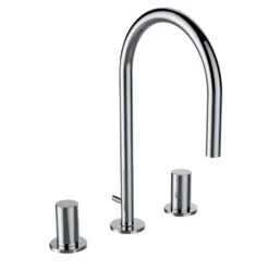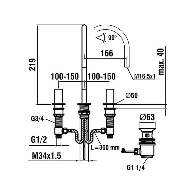 Eigenschaften: Zweigriffmischer mit Ablaufventil G 1 1/4 Schwenkauslauf Ausladung: 16,5 cm Durchfluss: 5,7l /min bei 3 bar
