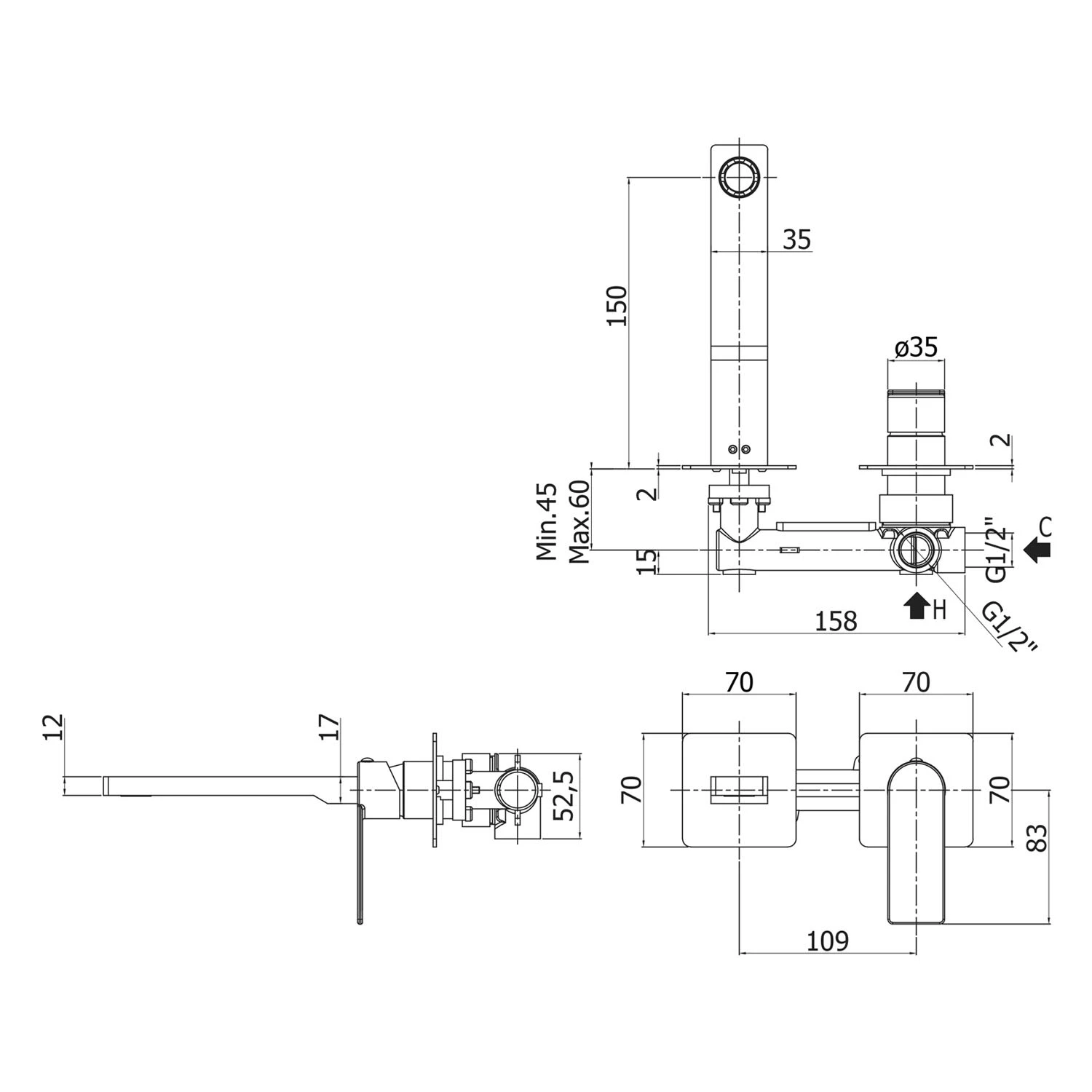 Artikeldetails: italienisches Design spielt mit der Ausdruckskraft der geometrischen Formen edle matt schwarze Oberfläche für ihr modernes Bad bis zu 50% Wasser-und Energiesparen durch optimierten Durchfluss von 5 ltr/min, schützt die Umwelt und ihr Budget Luftsprudler erzeugt einen sanften Wasserstrahl perfekte Abmessungen für die Kombination mit Aufsatzschalen einfache Bedienung dank leichtgängier Keramikmischkartusche inklusive passendem Unterputzkörper für eine perfekte Funktion Eigenschaften: 2-teilig Durchfluss begrenzt auf maximal 5 Liter pro Minute Luftsprudler M24x1 1/2″ Anschlüsse Wandplatten aus Edelstahl, 7 x 7 cm