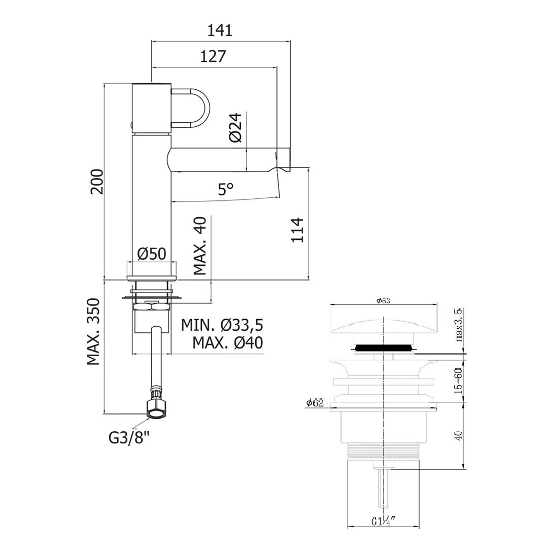Artikeldetails: elegantes italienisches Design mit geometrischer Formensprache bis zu 50% Wasser-und Energiesparen durch optimierten Durchfluss von 5 ltr/min, schützt die Umwelt und ihr Budget komfortable Nutzung durch perfekten Bewegungsfreiraum unter dem Auslauf der verdeckte Luftsprudler erzeugt einen sanften Wasserstrahl einfache Bedienung dank leichtgängiger Keramikmischkartusche robuste Hochglanz verchromte Oberfläche inklusive leicht zu betätigender Push-open Ablaufgarnitur G 1¼ einfache Montage durch hochwertige Befestigung Waschtisch-Einhebelmischer: Durchfluss begrenzt auf maximal 5 Liter pro Minute Luftsprudler M16,5×1 mit 2 Edelstahlschläuchen 3/8″ G Pop Up Ablaufventil: rund, kurz für Waschtisch mit Überlauf Material: Messing, verchromt Verstellbereich: 15 – 60 mm Anschluss: 1 1/4″ DN32 leicht zu reinigen