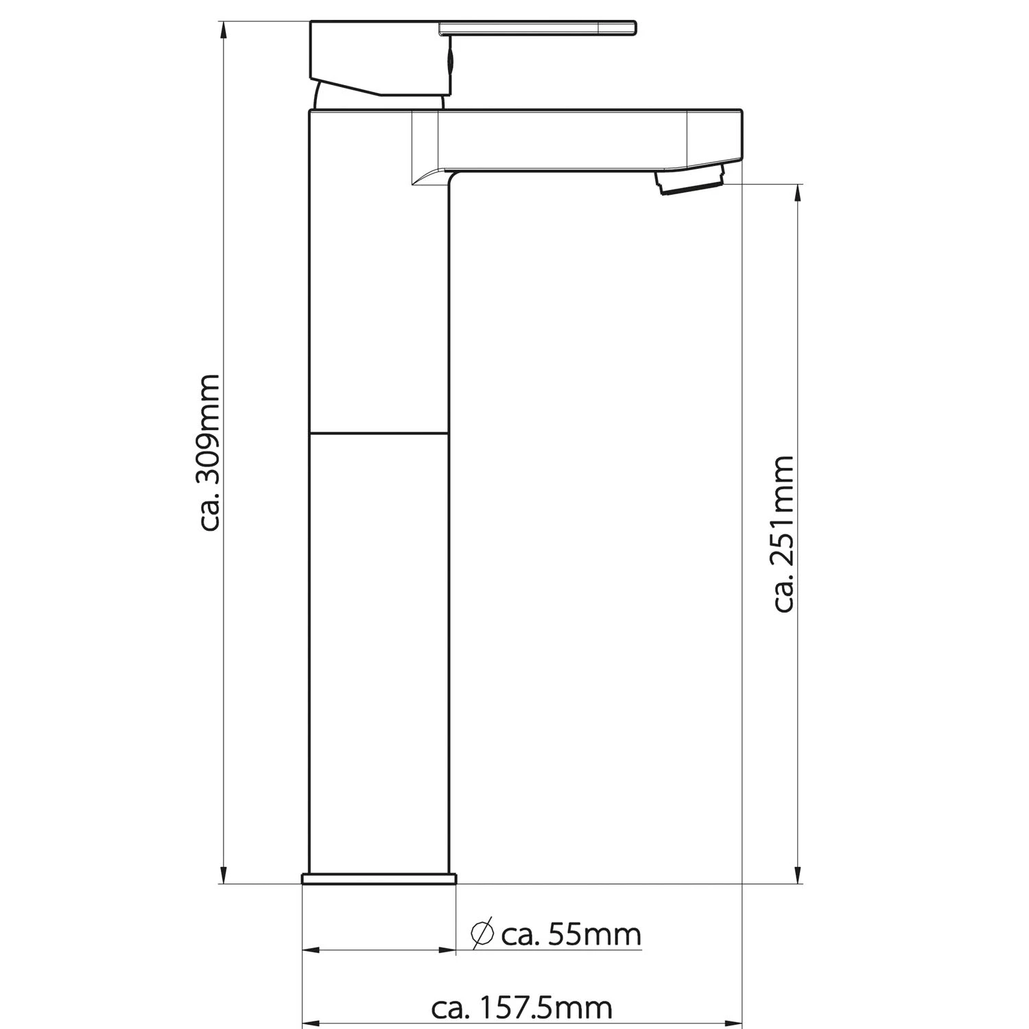 Kronenbach Neura 2.0 XL-Size Waschtisch-Einhebelmischer Ohne Ablaufgarnitur