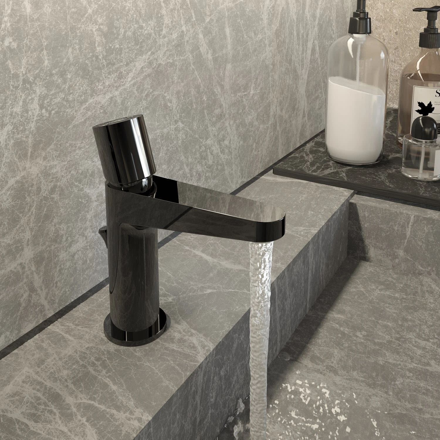 Herzbach DEEP BLACK Zweiloch-Armatur 14 Cm Mit PUSH-Ablaufventil