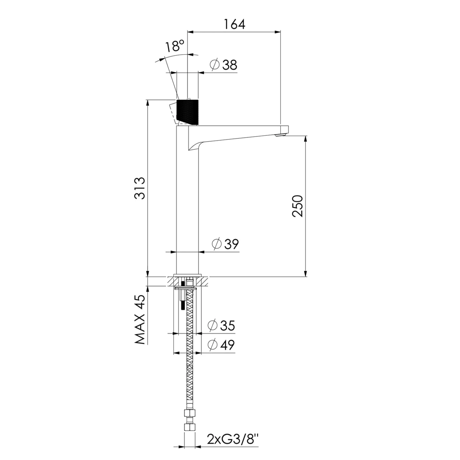 Eigenschaften: Material: Messing mit Keramikkartusche inkl. Flexschläuchen 3/8″ sichtbarer Luftsprudler, normaler Strahl Standmontage