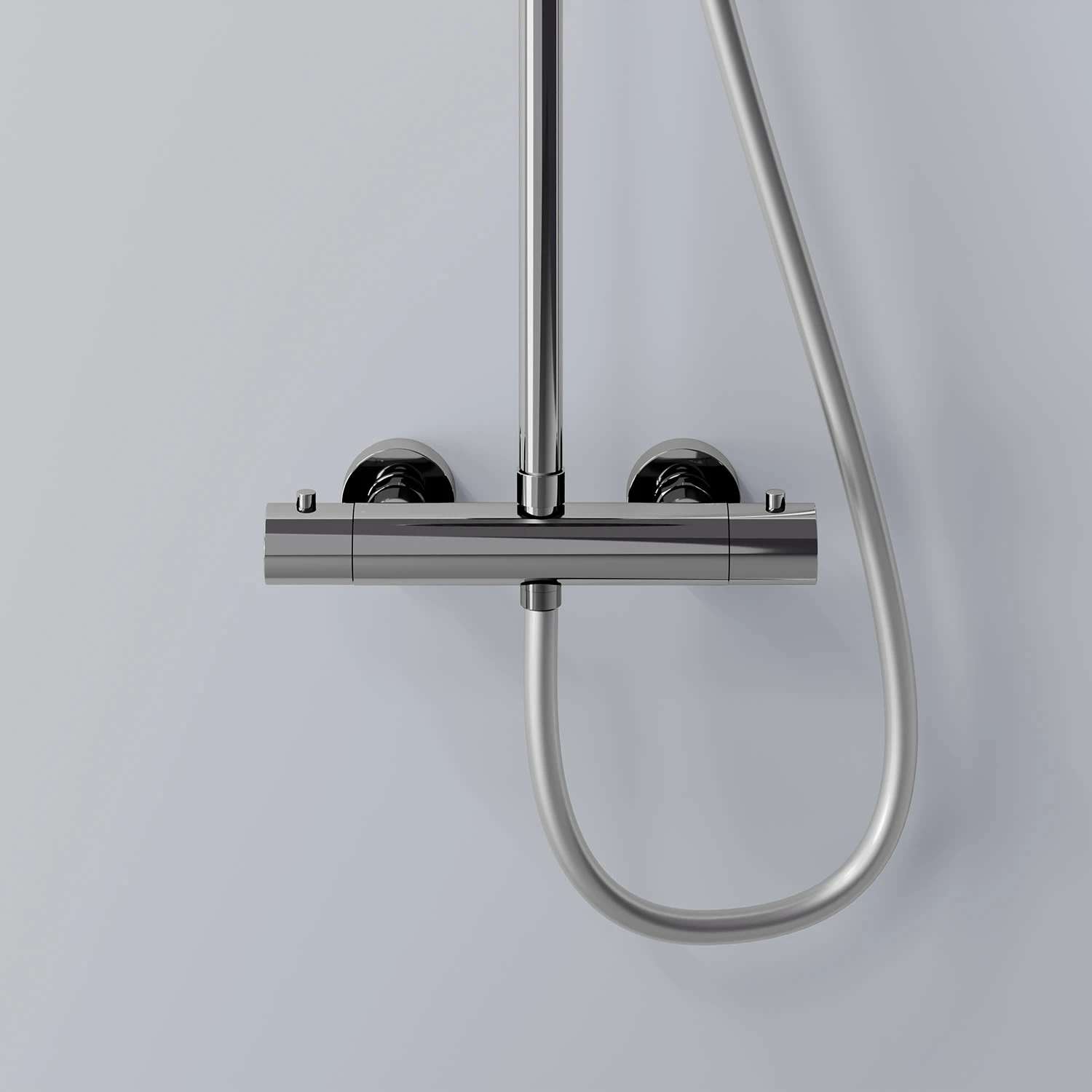 Eigenschaften: bestehend aus: Thermostat-Armatur Regenbrause Ø 22 cm Handbrause Kunststoffbrauseschlauch 150 cm Material: Messing mit Easy-Clean-System Aufputzmontage