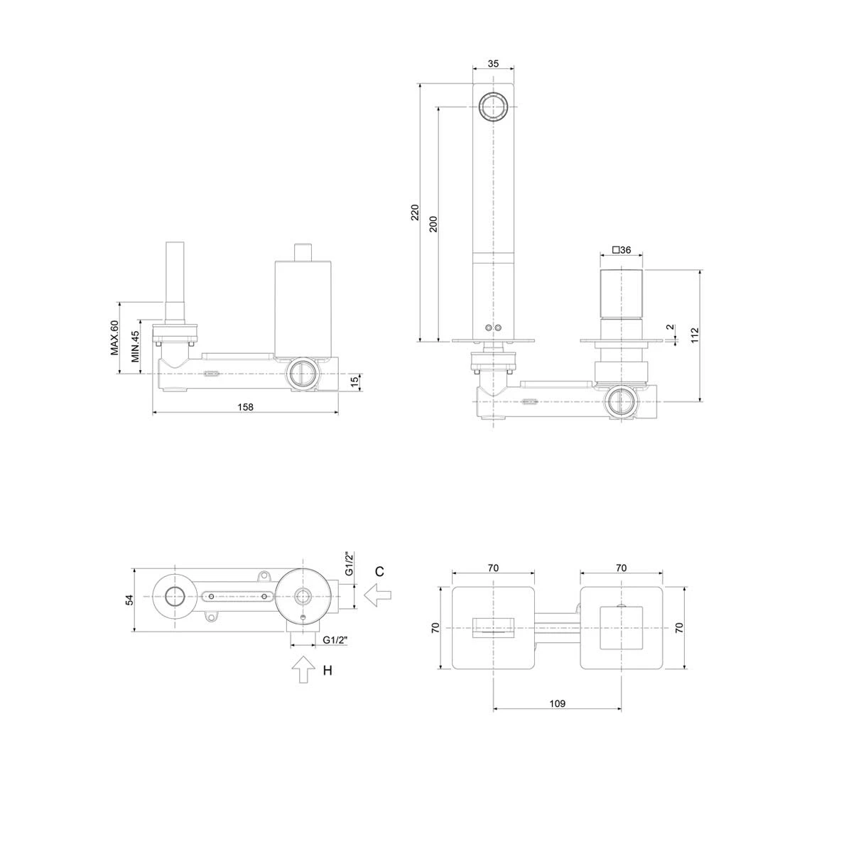 Dornbracht CYO Waschtisch-Wand-Einhandbatterie, Ausladung 19 Cm