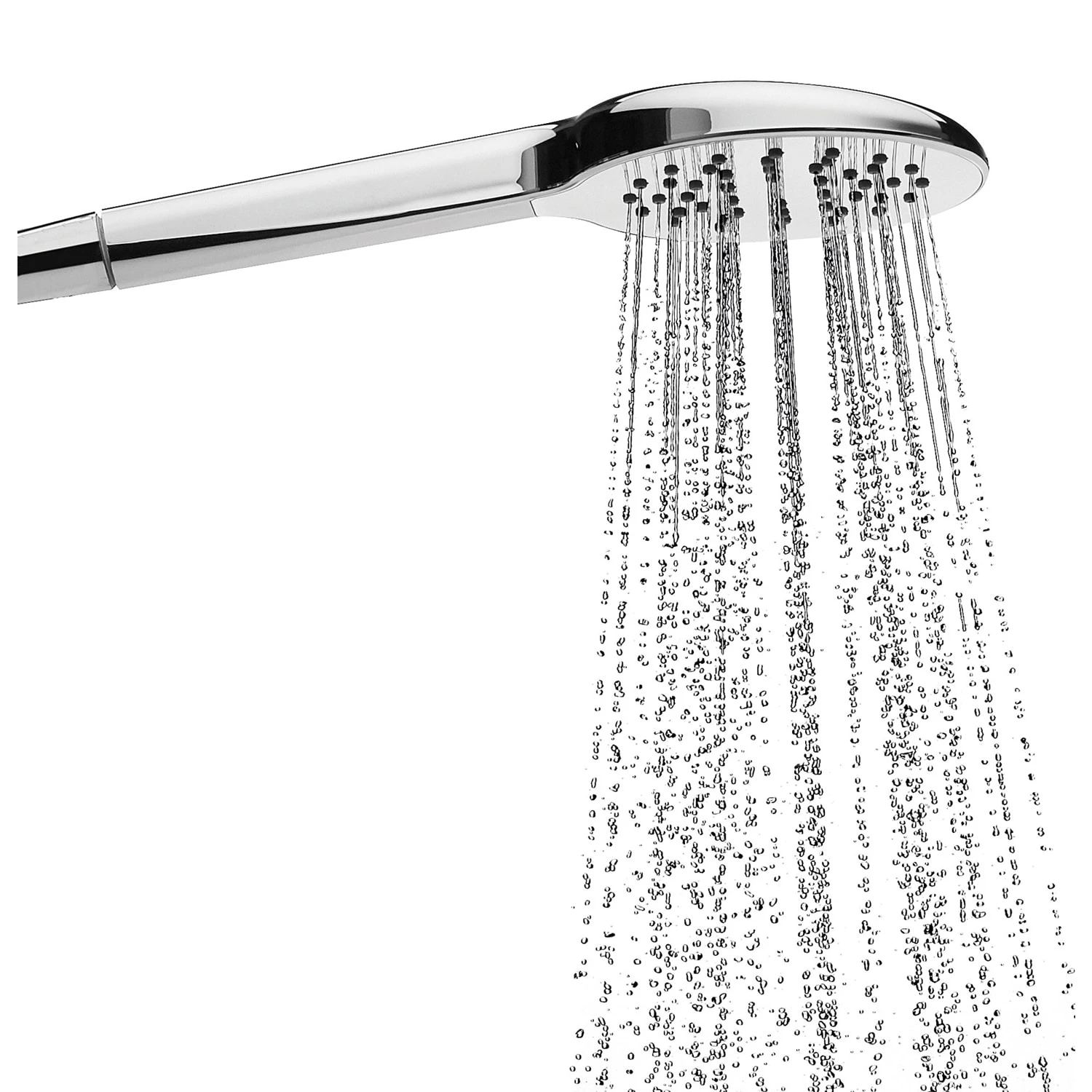 Eigenschaften: 3-Wege-Umstellung: Kopfbrause, Handbrause oder kombinierte Kopf- und Handbrause Kopf- und Handbrausehalter mit hohem Widerstand einstellbarer Abstand zwischen den Wandhalterungen Duschstange: mit Kopf- und Handbrausehalter PVC-Brauseschlauch 150 cm 1/2″ Wandanschluss Kopfbrause: intelligente Wasserverteilung für minimalen Wasserverbrauch bei hervorragendem Duschkomfort Durchflussmenge: max. 6 Liter pro Minute Easy-to-Clean-Technologie Abmessungen: Ø 20 cm Handbrause: Strahlart: Regenstrahl Wasser sparen bei vollem Duschgenuss Durchflussmenge: max. 6 Liter pro Minute Easy-to-Clean-Technologie Abmessungen: Ø 6 cm
