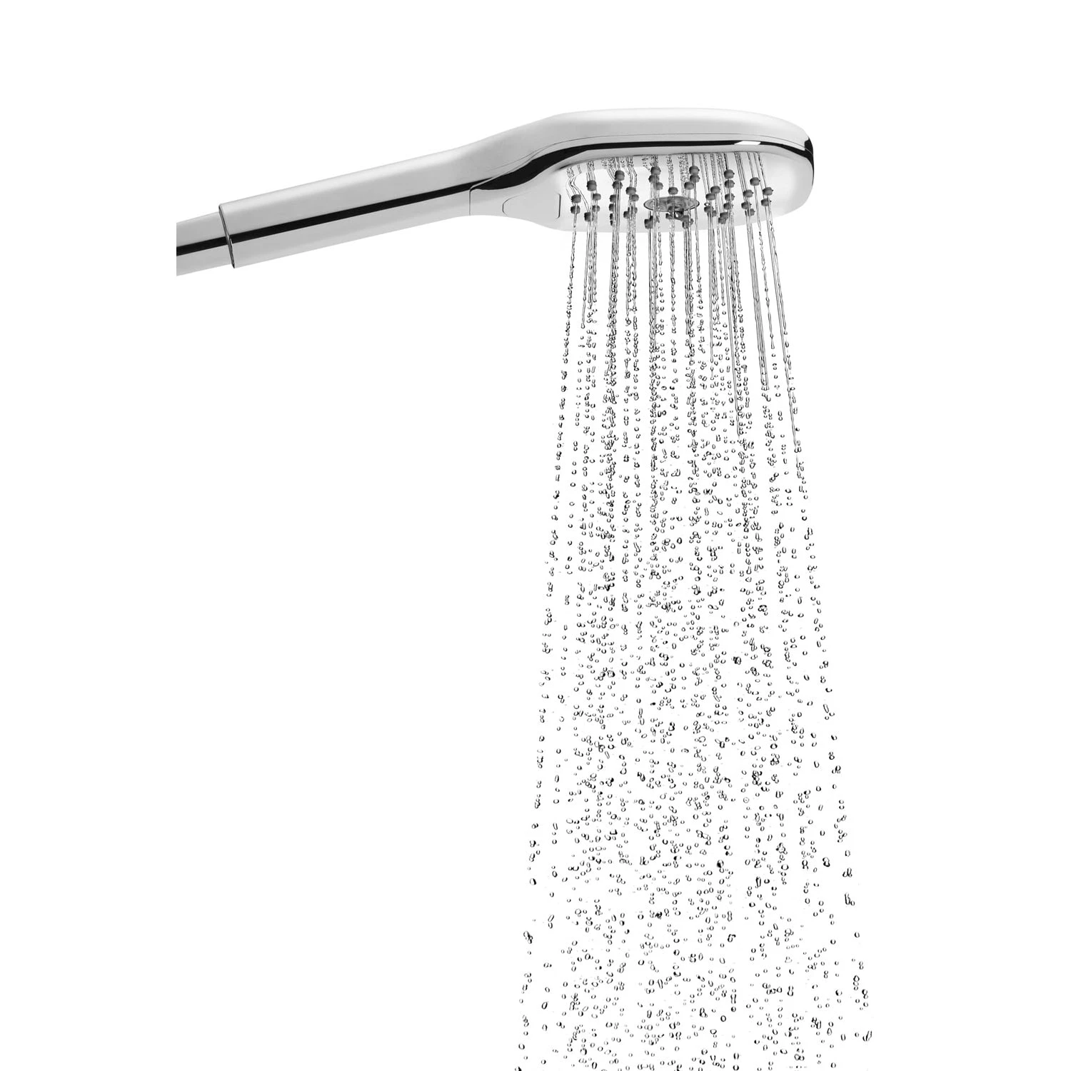 Eigenschaften: minimalistisches, zeitloses und klares Design abgerundete Ecken 3 Strahlarten: Regen-, Massage- und Wirbelstrahl komfortable Umstellung der Funktionen durch Select-Taste Wasser sparen bei vollem Duschgenuss Durchflussmenge: max. 6 Liter pro Minute Easy-to-Clean-Technologie