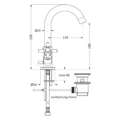 Herzbach STILO Waschtisch-Einlochbatterie M-Size Mit Ablaufgarnitur